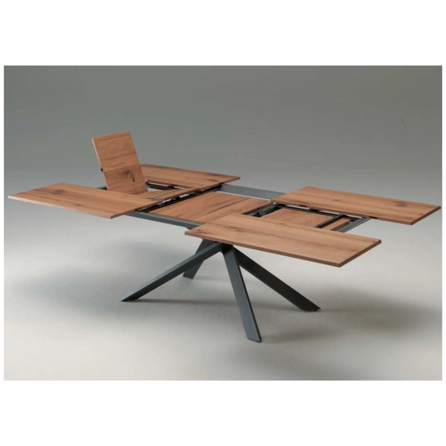 The exclusive opening mechanism is based on the geometric scrolling of the tops which allows the larger table to quickly go from 200cm x 100cm to 254cm x 138cm, and will comfortably seat up to 12 people.