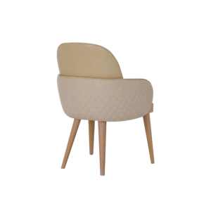 The padded curved wood back element that wraps around the backrest makes the chair an uncompromising luxury furnishing object. This Dining Chair is a luxurious, contemporary dining chair distinguished by its blend of plush upholstery, subtle tailoring, and refined wooden accents. Its graceful curves and premium details make it an ideal choice for elegant dining rooms that prioritize both comfort and timeless style.