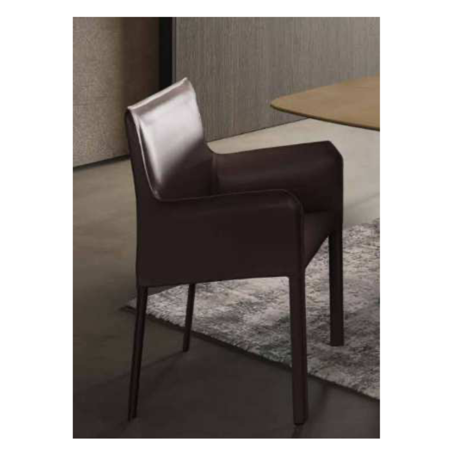 Minimal yet inviting silhouette with compact arms for easy placement at dining tables