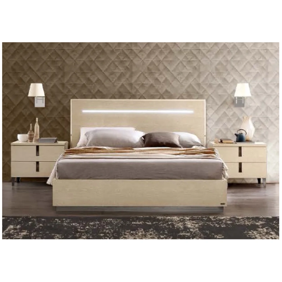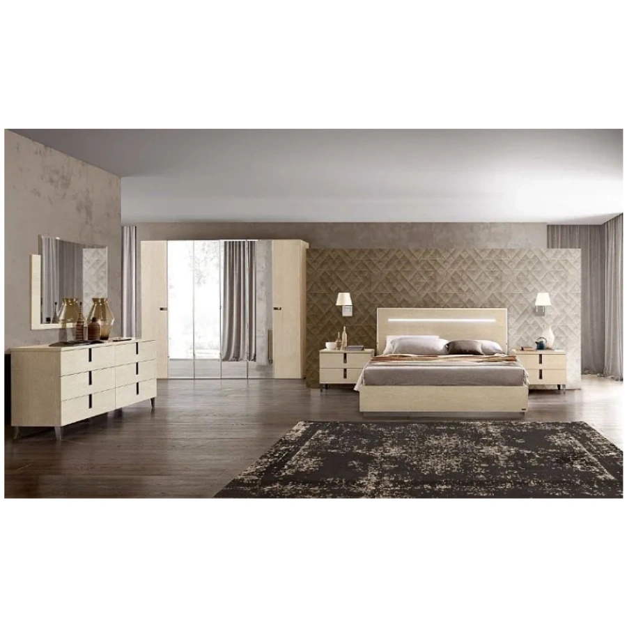 This bed is a part of the Ambra Bedroom collection renowned for its exclusive design, premium materials, and functional lighting features aimed at enhancing bedroom comfort and style.