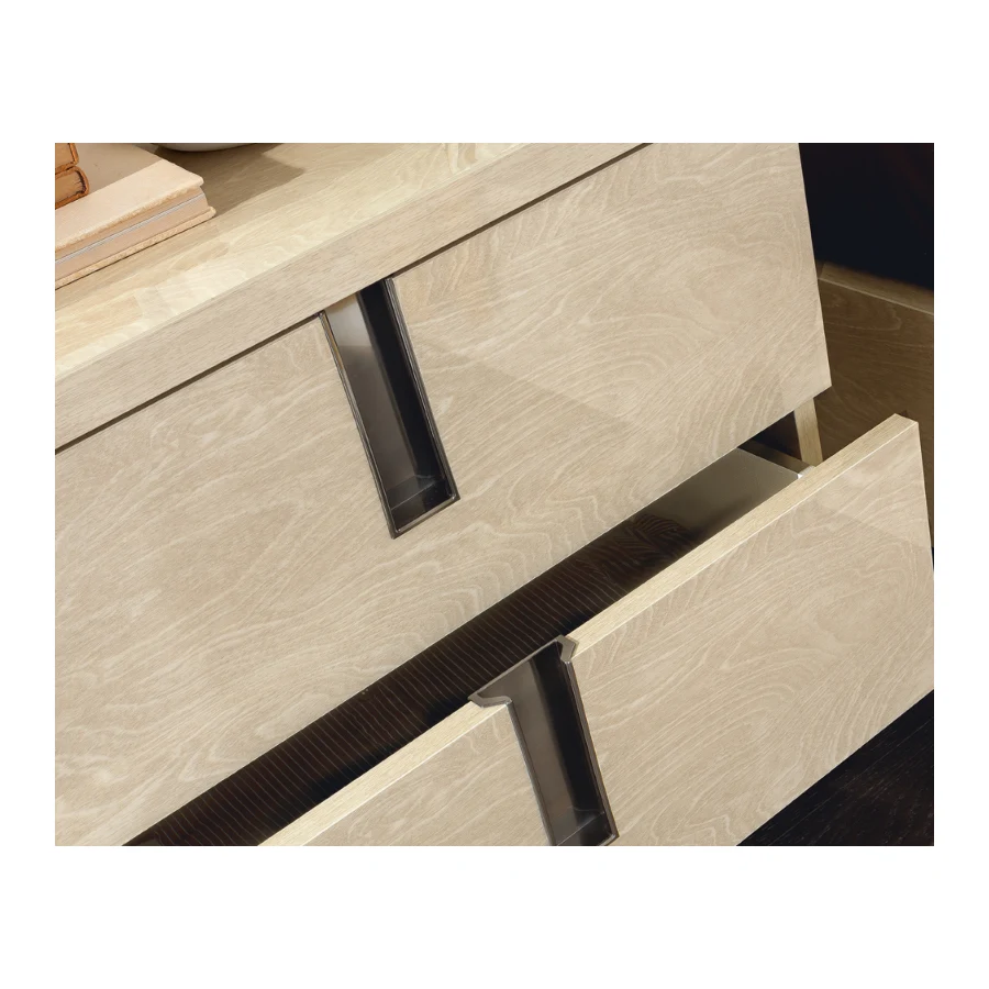 Sand birch wood finish with high-gloss polyester lacquer and UV drying for lasting sheen and resilience.