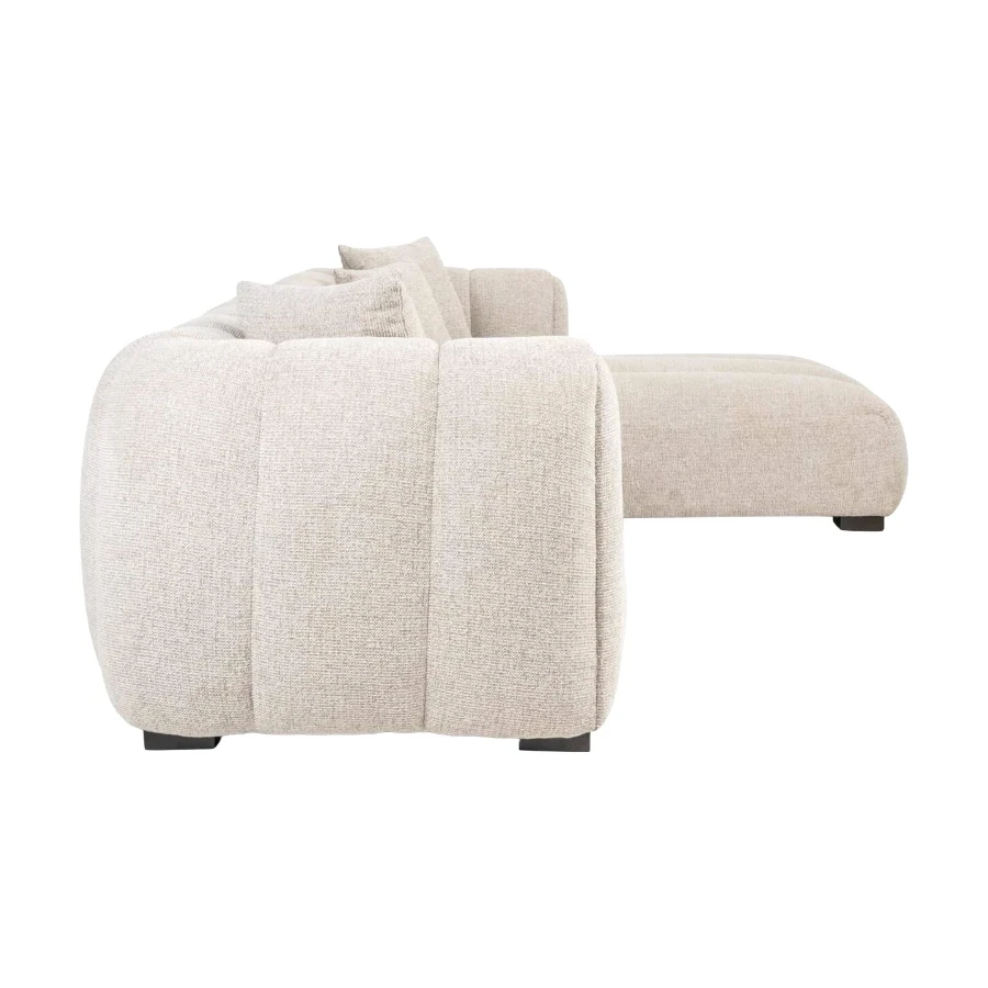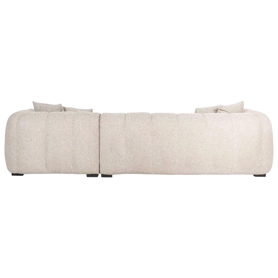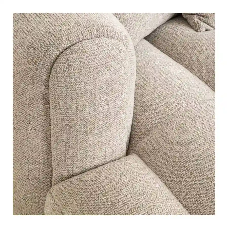 The seat and backrest appear wide and comfortable, with soft lines and a calm appearance. The upholstery has a light, natural color with a matte texture. Thanks to its balanced proportions and understated design, the sofa fits well into modern and serene living spaces.