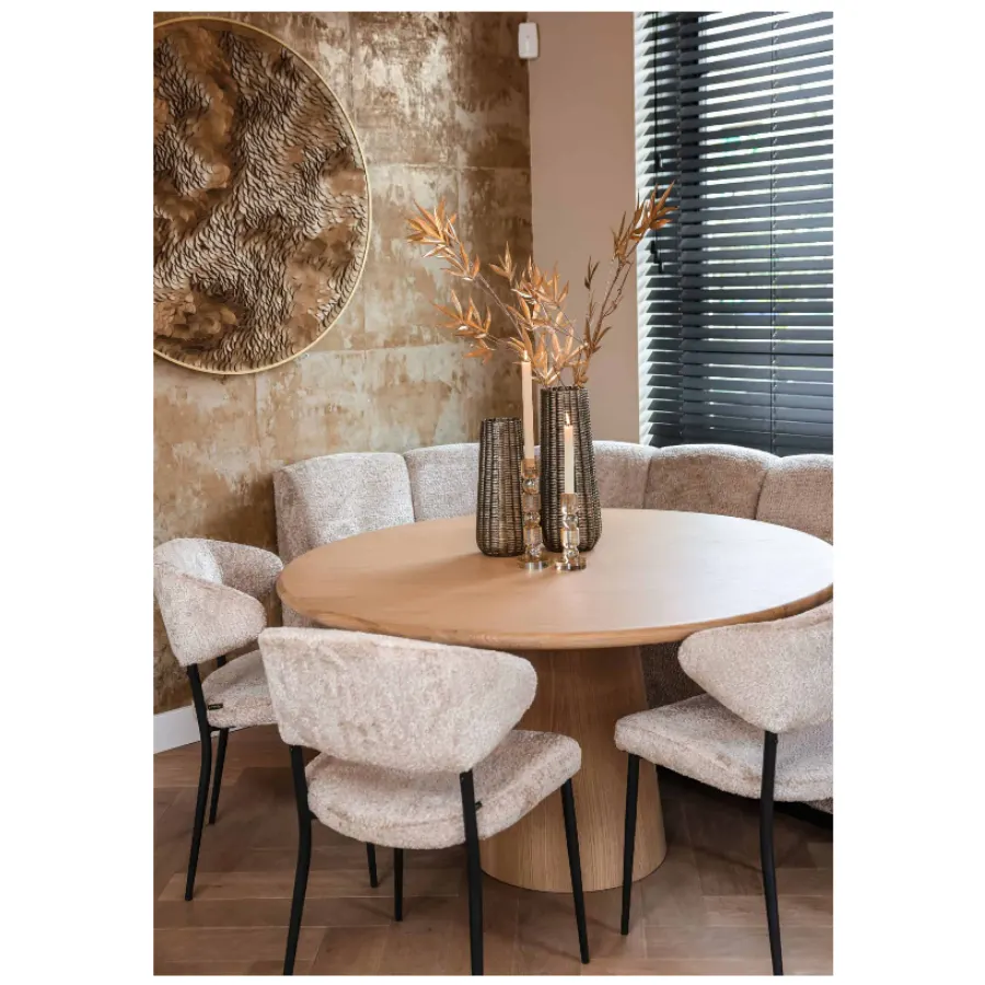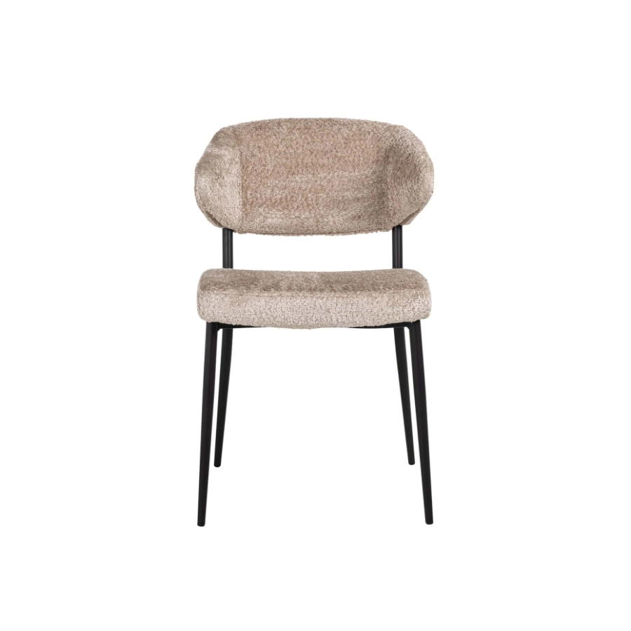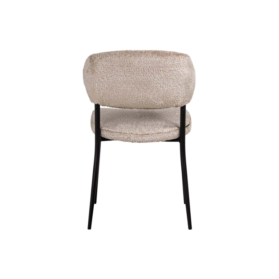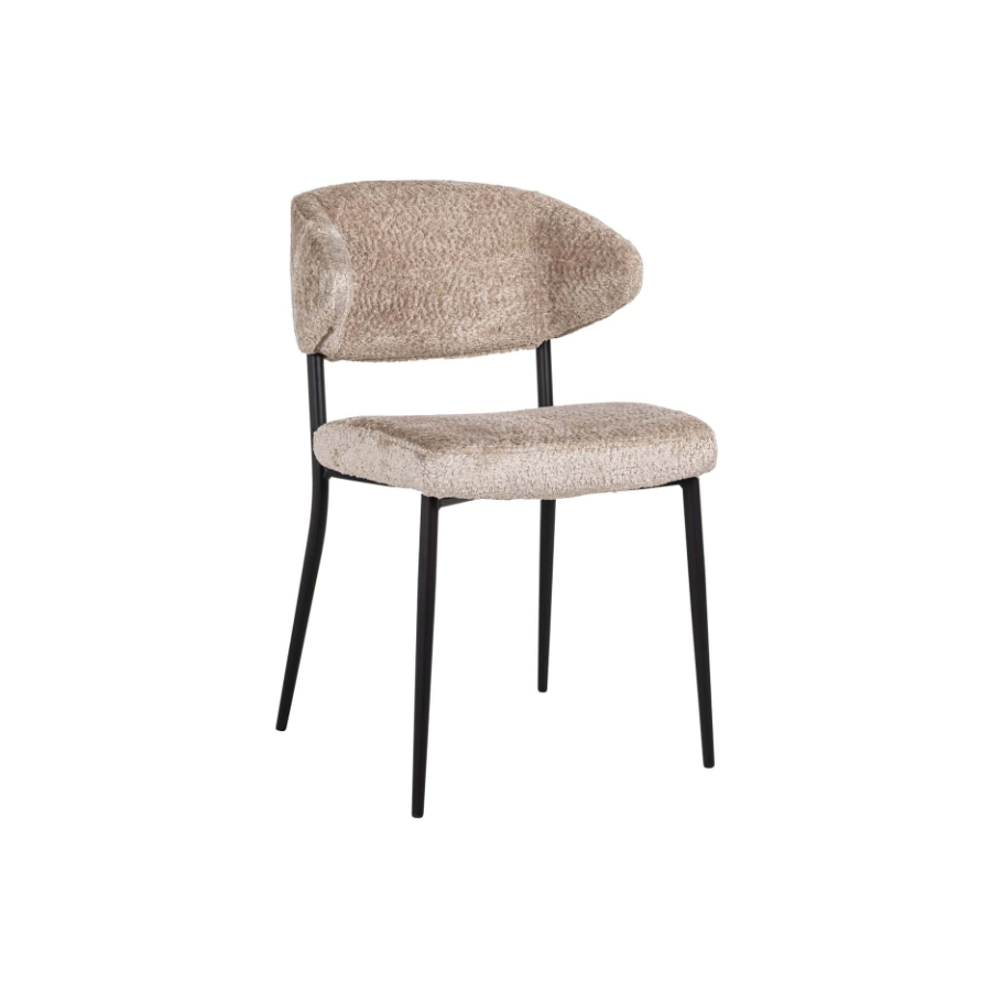 The Bea chair, available in a set of two, combines elegance and comfort through its fabric: Sheep Nature. This fabric adds a touch of elegance to any interior with its soft, neutral tone, and also, known for its warm and natural appearance, brings a rustic and cozy feel.