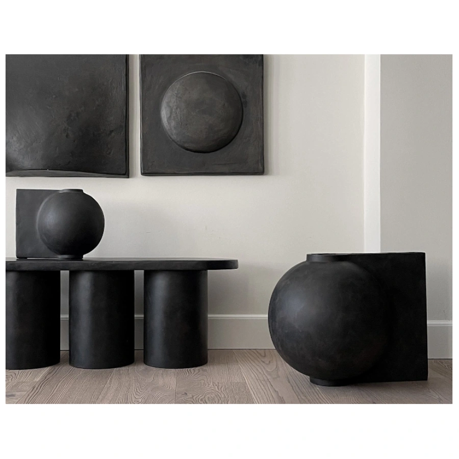 Fiber Concrete:Â Inspired by the Brutalism Architecture movement of the mid-20th century, fiber concrete has become the signature material of the 101 Copenhagen furniture collection. Emphasizing sculptural shapes, the texture of concrete creates a fine balance between sharp architectural lines and soft organic curves. Cast in lightweight fiber concrete, each product gets a unique tactile surface with small incorrections and nuances. The surface is afterwards coated, to create a strong and resistance product. Finally, the product is hand painted two times by brush, to create a brushed layered colour.