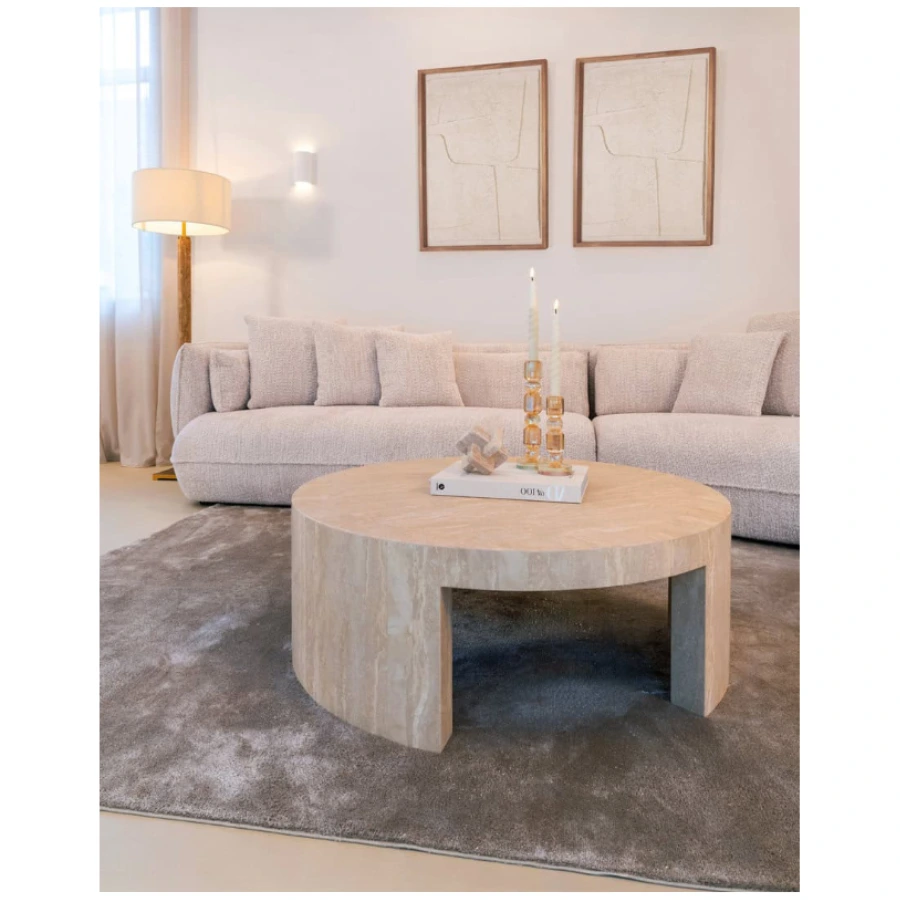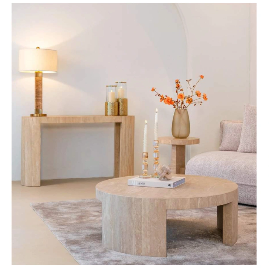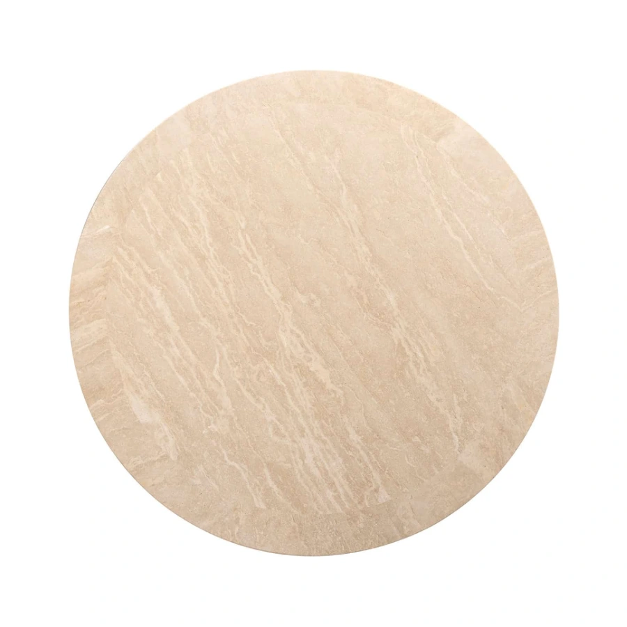 Maintenance: Travertine surface should be protected from acidic spills; base easily wiped clean for everyday elegance.