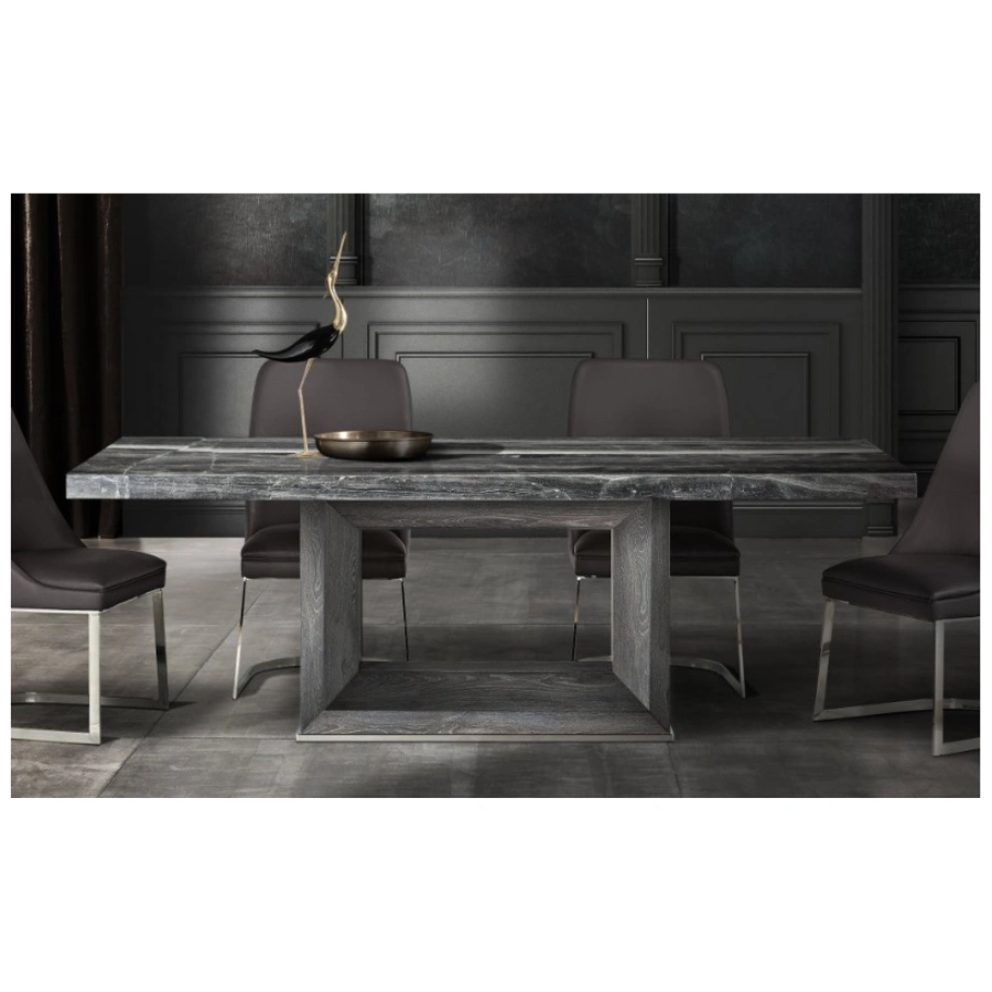 The Blade Dining Table is a luxurious Italian designer piece that stands out for its sharp, architectural base and slab-style natural midnight grey stone top. It is a centerpiece for modern and contemporary interiors, offering Italian craftsmanship, customization, and bold, timeless style.