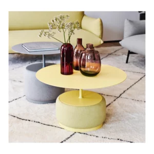 Bloom is a coffee table with sound absorbing action, thanks to its exclusive base upholstered in fabric.