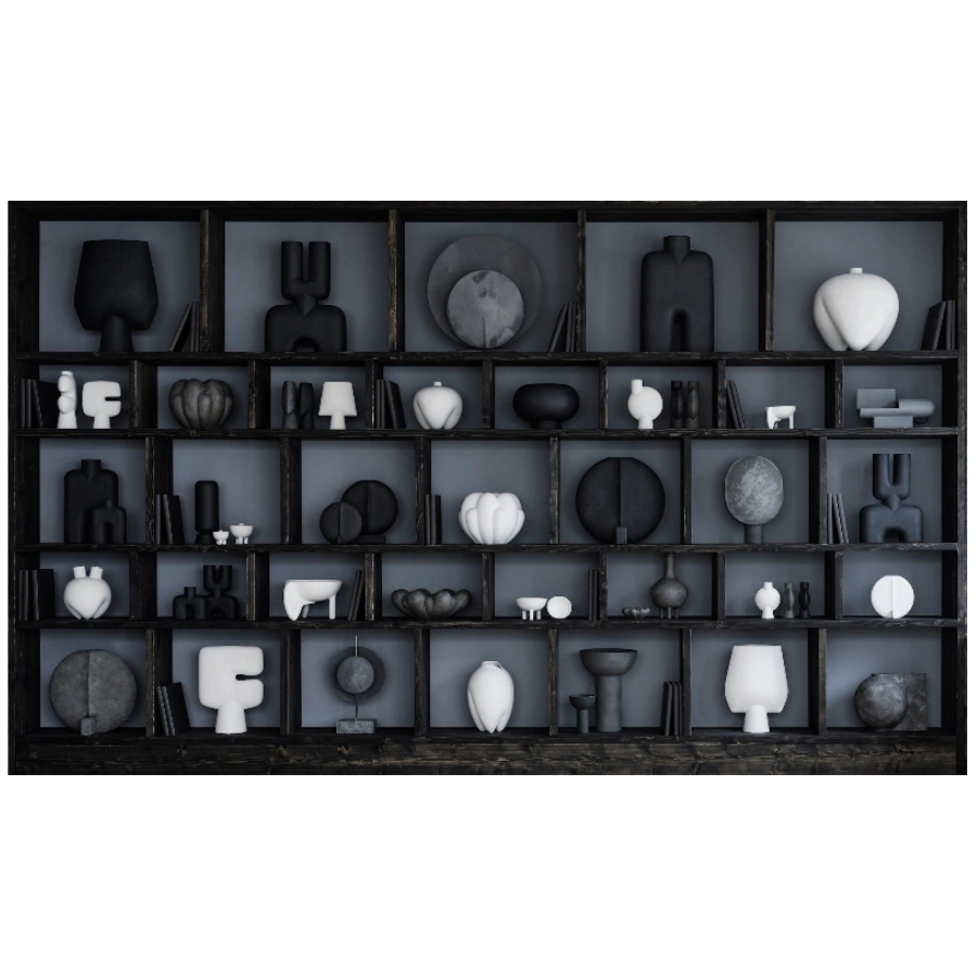 Elegantly sculpted, each Bloom ceramic is characterized by several flower leaves fading into each other, reminiscing the different stages of a flower from closed to open. Bloom is an interpretation of 70s floral inspired design. But with a more raw and clean expression. The smoothly curved surface is contrasted by a strong underlying geometry and is enriched by a beautiful play of shadows around the depths of the surface. Due to its expressive design, the Bloom vases changes experience throughout the day, according to the position of light and shadows.
