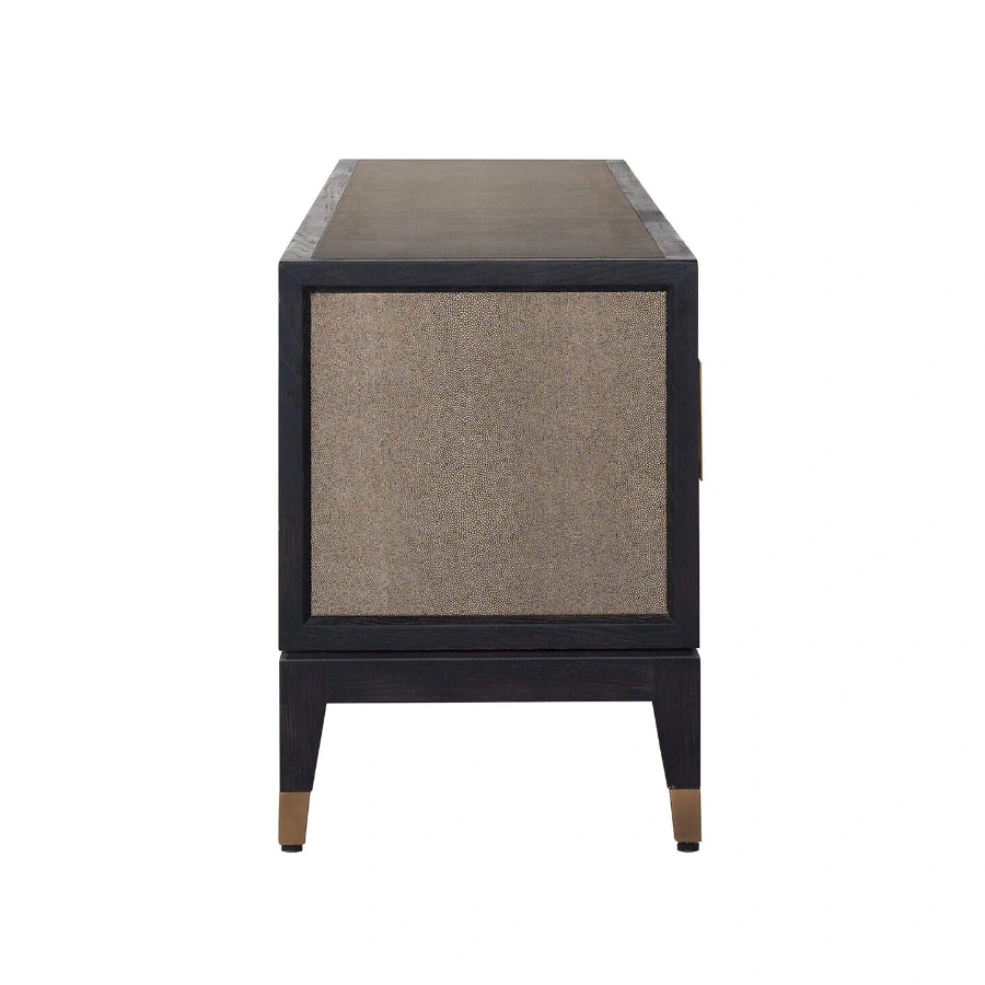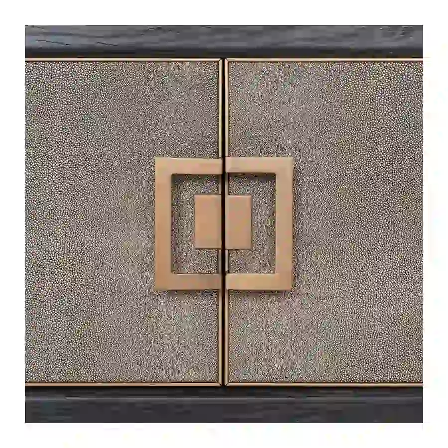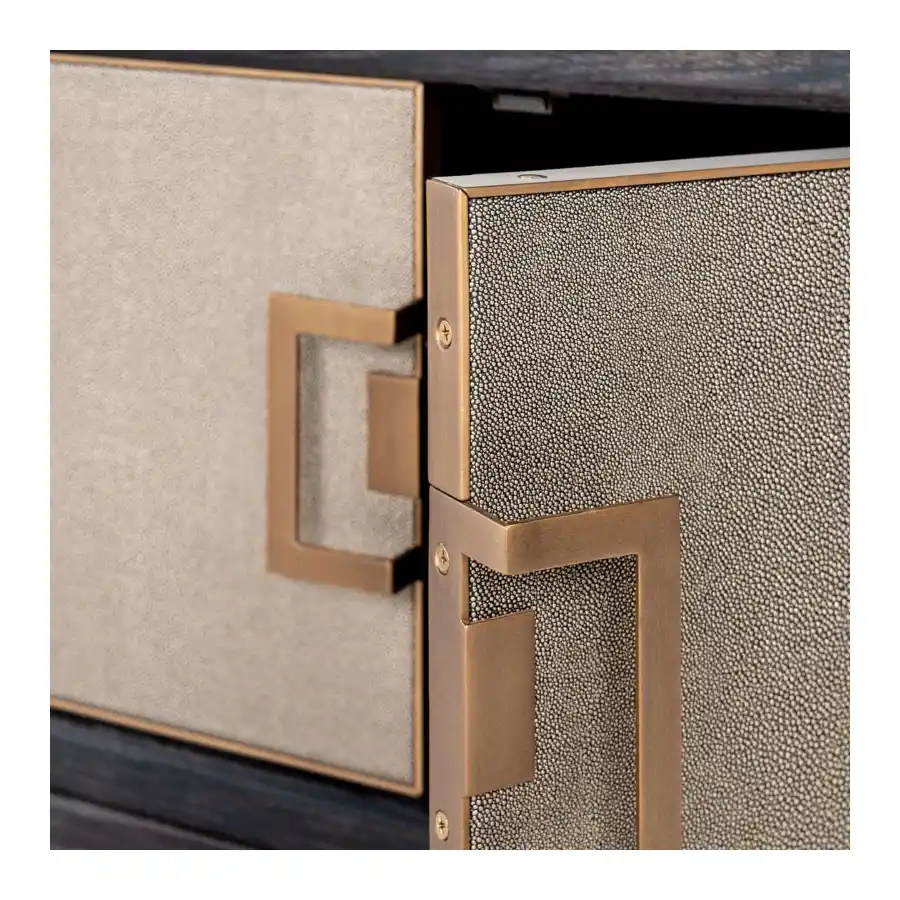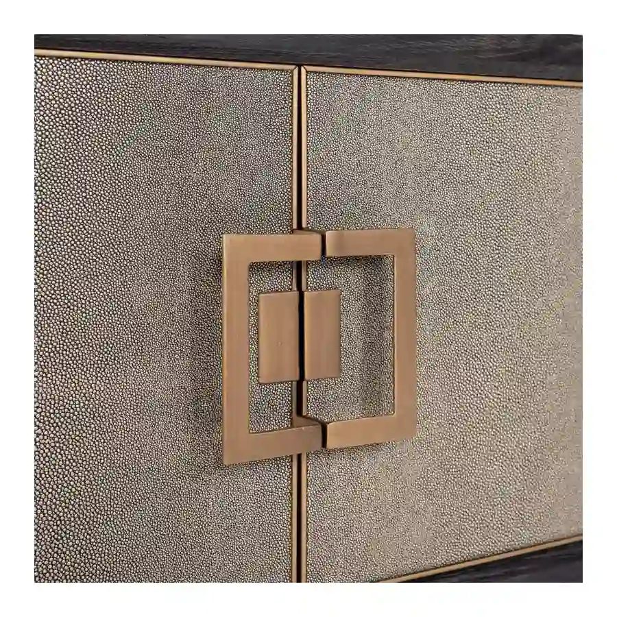 The sides, top and door fronts are covered with shagreen effect artificial leather replicating a look and feel similar to that of stingray skin.