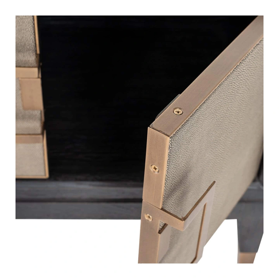 Alongside the golden hue, this decorative faux shagreen brings a touch of luxury to the piece.
