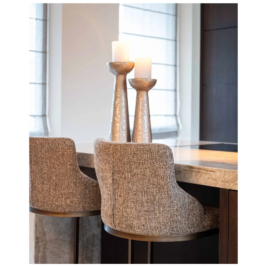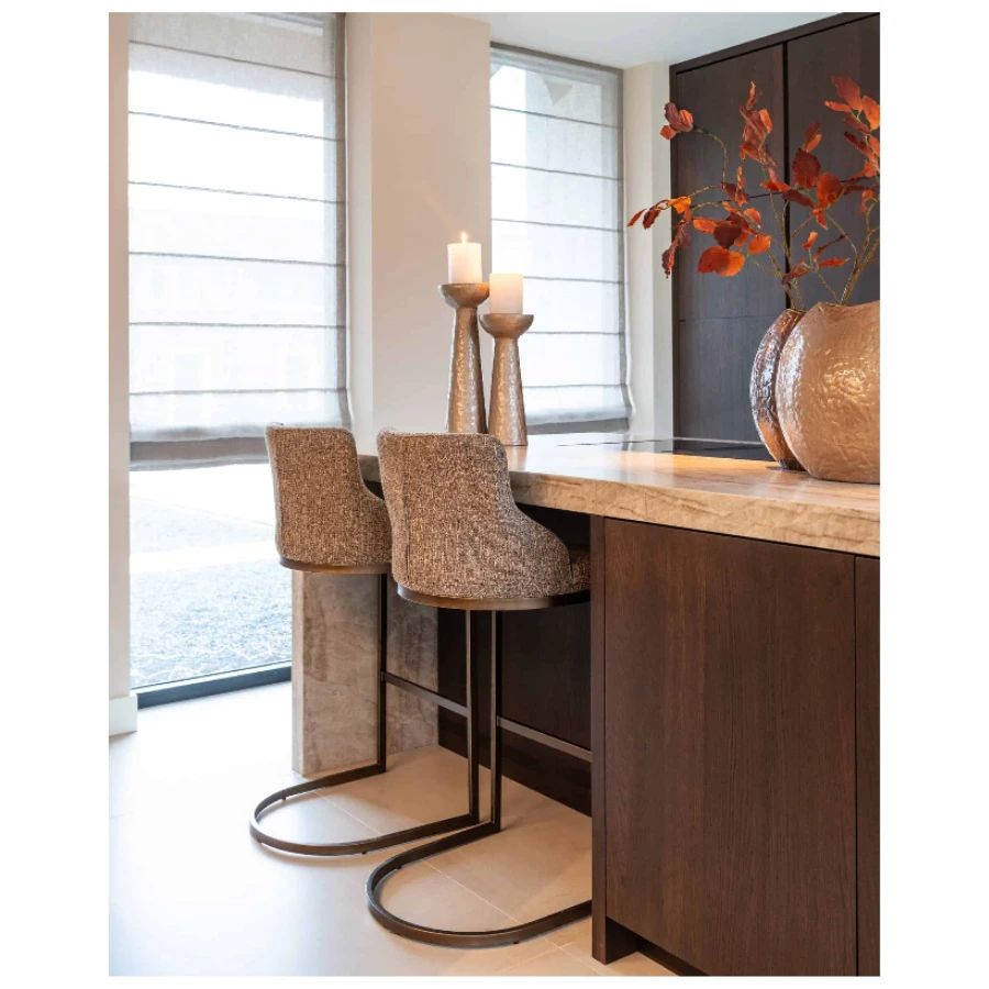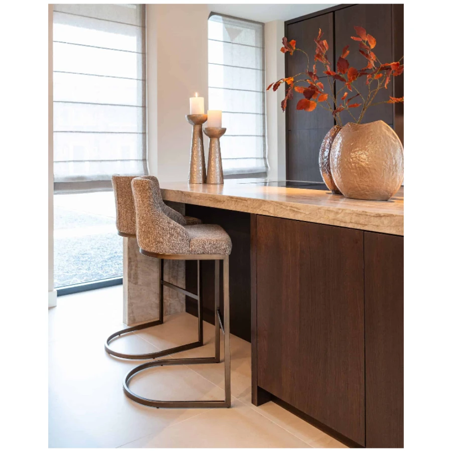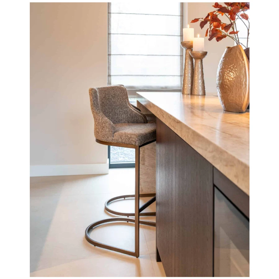 Bar stool Bolton has the same slim silhouette, now in brown tweed. A timeless bar stool that combines well with natural materials. Set of two.