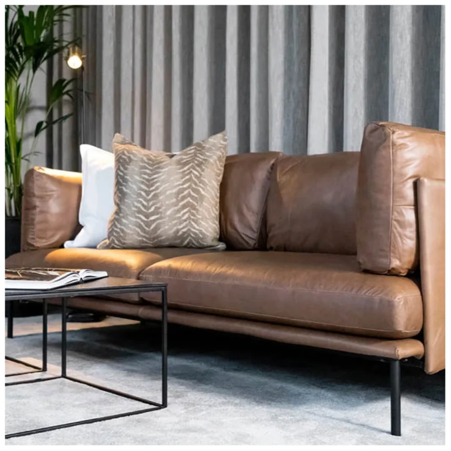 The Brioche Leather Sofa is a sleek and modern 3-seater sofa crafted from high-quality leather.