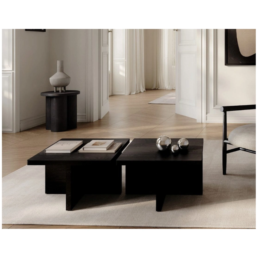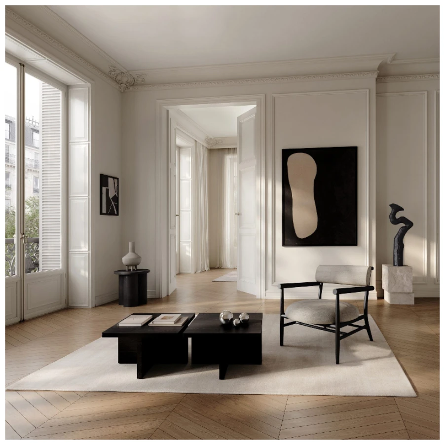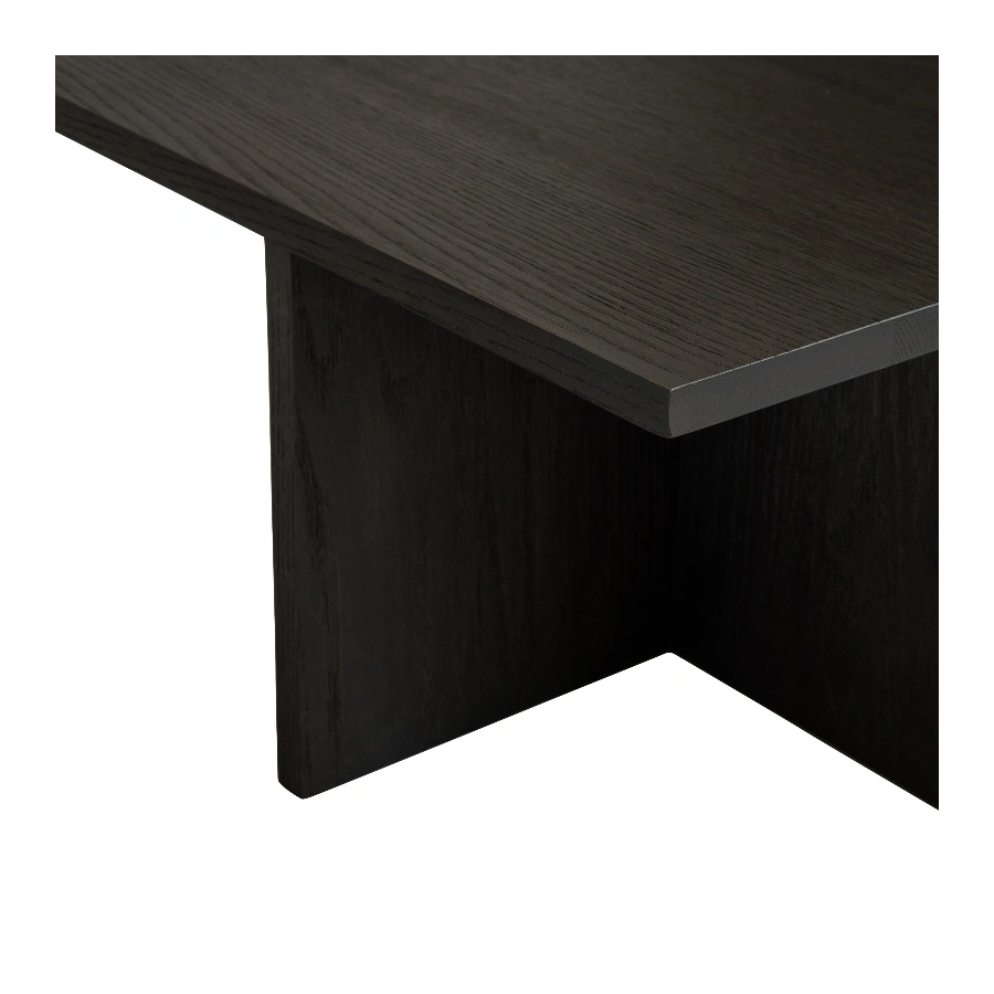 Featuring a lounge chair, coffee table and two dining chairs, each piece is carefully crafted to showcase the interplay between architectural strength and organic warmth. The solid oak construction enhances the sculptural quality of each design, where sharp, defined lines meet gentle curves of the backrests and armrests. This balance of hard and soft creates a visual dynamic, making the Brutus collection both striking and approachable. The natural finish allows the wood’s grain and texture to shine, offering a refined yet raw aesthetic that evolves beautifully over time. Made from FSC-certified American Red Oak, each piece in the Brutus collection is handmade by skilled craftsmen. Ensuring a flawless execution with seamless connections between various components, the Brutus furniture exudes minimal and clean aesthetics. Each piece in the Brutus collection stands as a statement of craftsmanship and design, seamlessly merging architectural precision with the inviting Coffee Black natural oak.