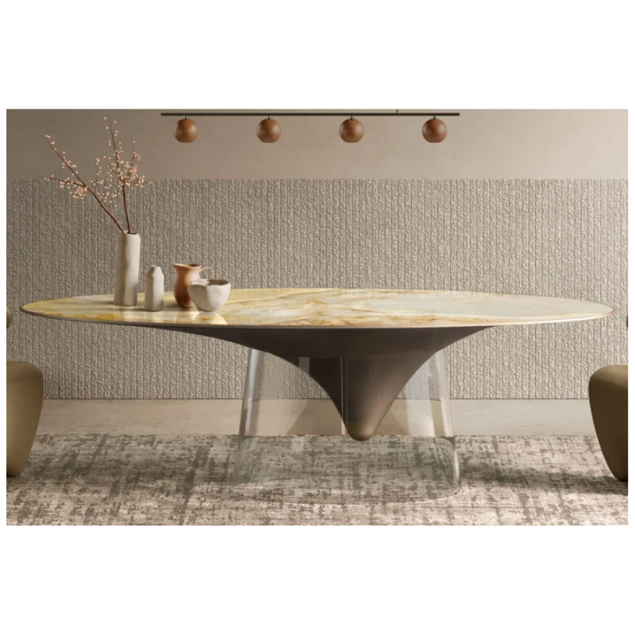 This piece is perfect for anyone seeking a bold fusion of organic artistry and modern material innovation in their dining space.