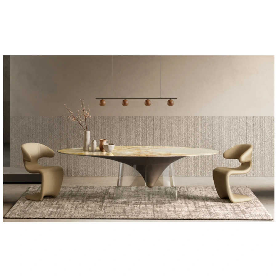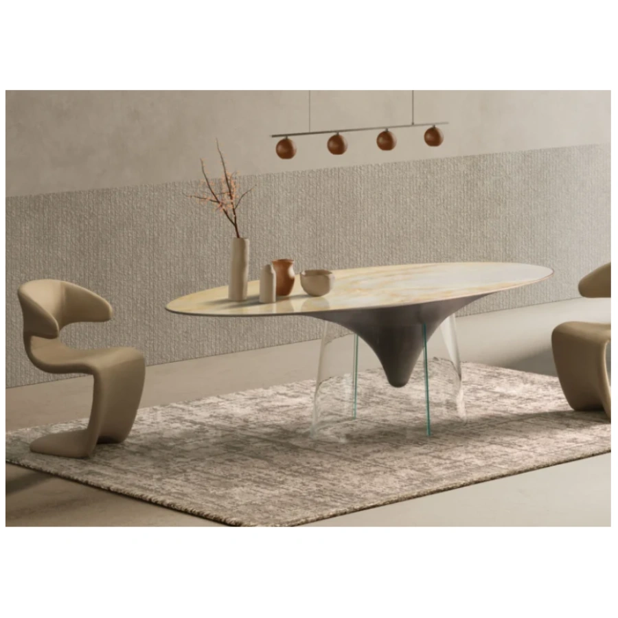 Visual Effect: Tabletop appears suspended, base has a sculpted, flowing form