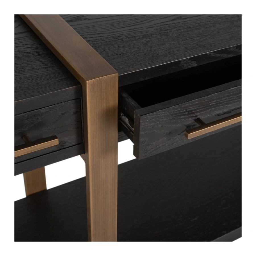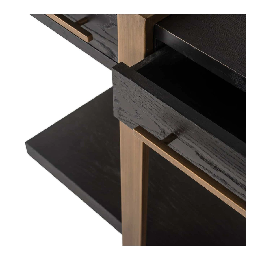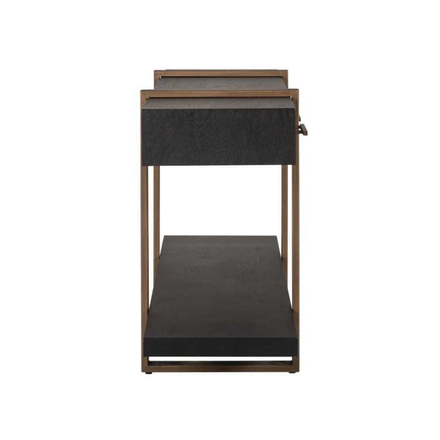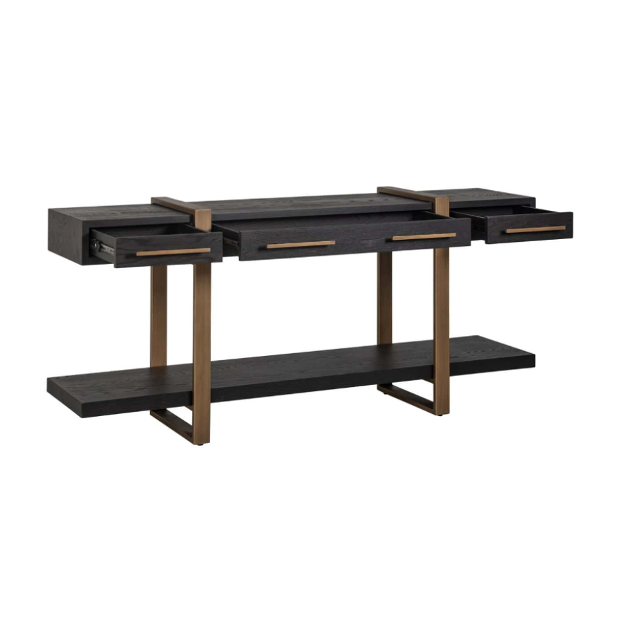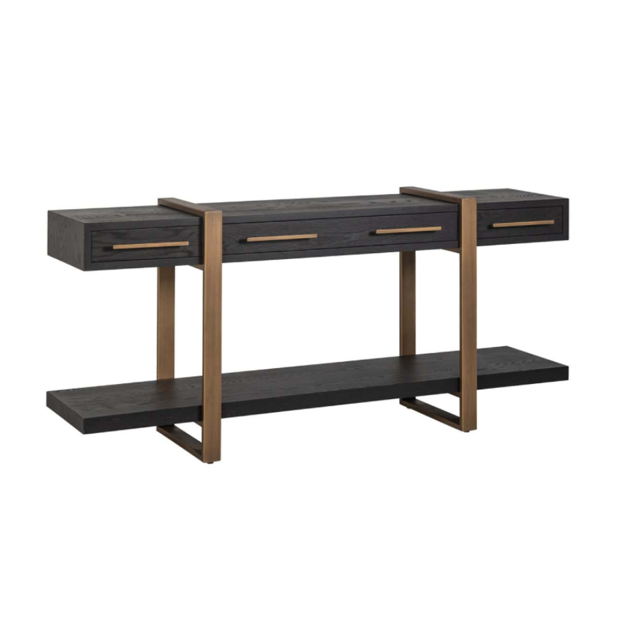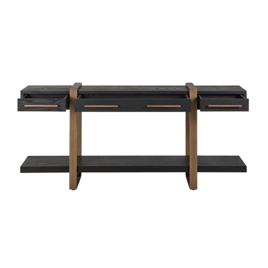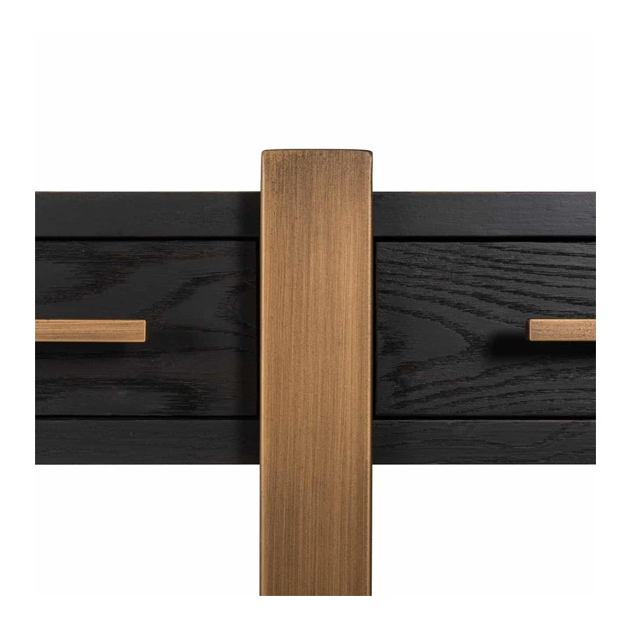 With contrasting golden legs and handles, this sideboard is a beautiful piece of furniture.