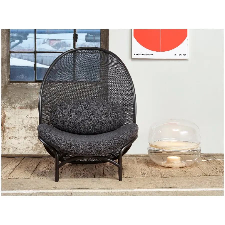 The Chips lounge chair is striking for its commanding airy backrest shaped like a potato chip – a chip that transforms into part of the chair base.