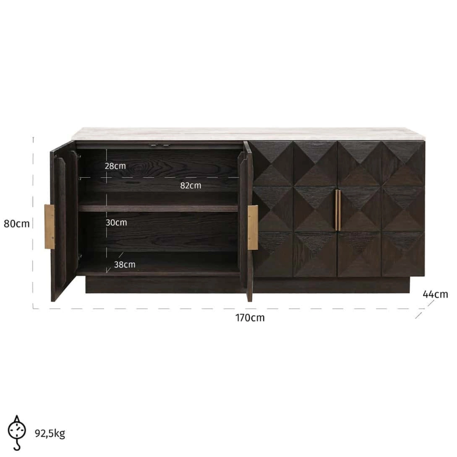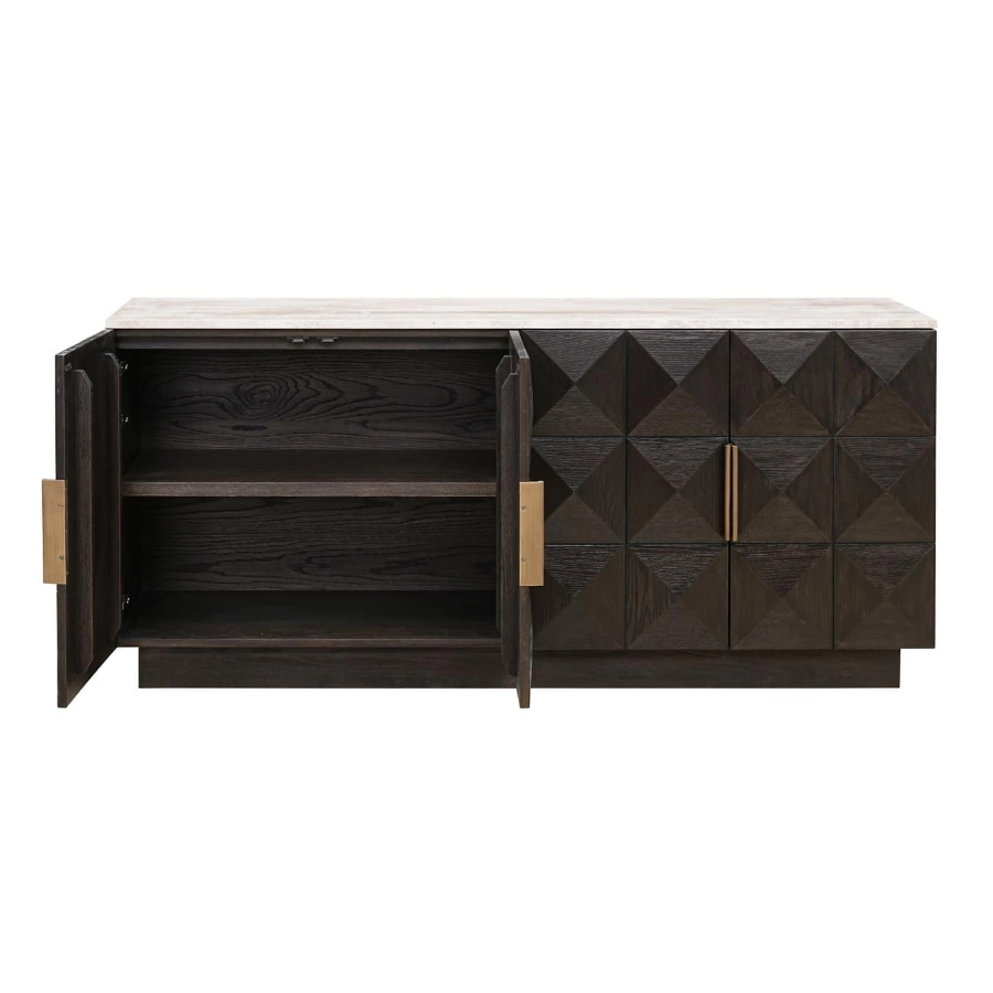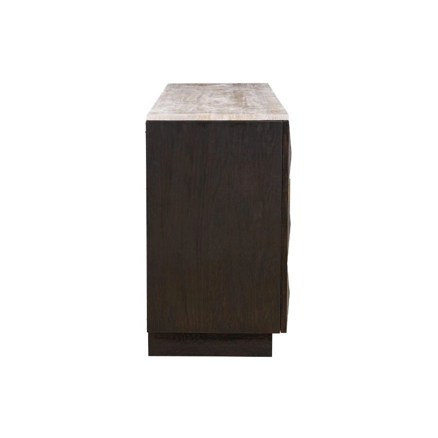 The sturdy stone top adds a luxurious and durable element to the design. With ample storage space behind the doors, this sideboard is both practical and a visual statement in any living space.
