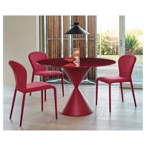 The round top of the Clessidra table can be configured in different materials , starting from MDF up to marble and ceramic.