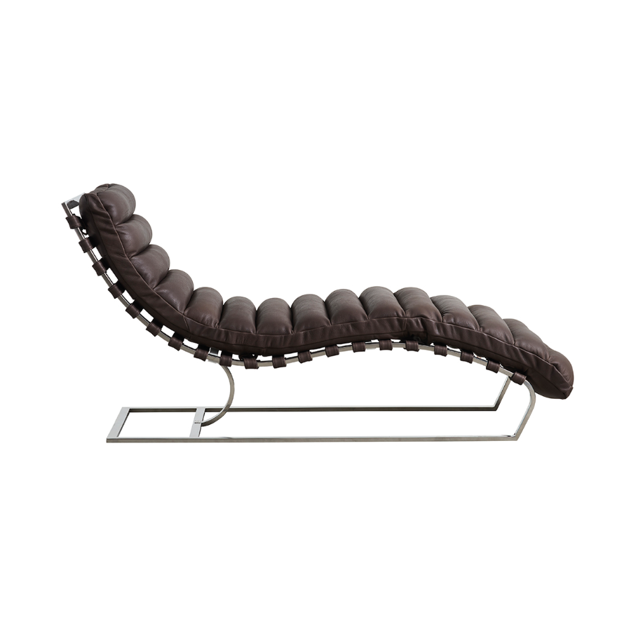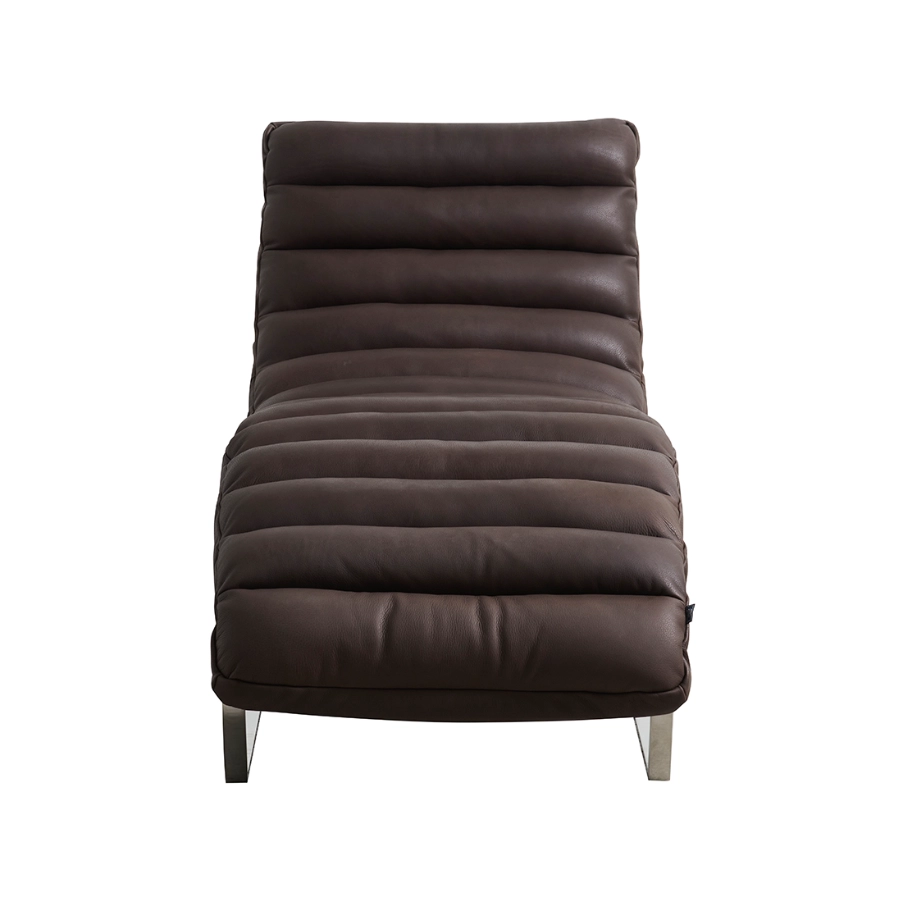 Elegant chaise lounge in Titanic Espresso brown leather with a moulded seat and distinctive horizontal stitching that adds depth and character.
