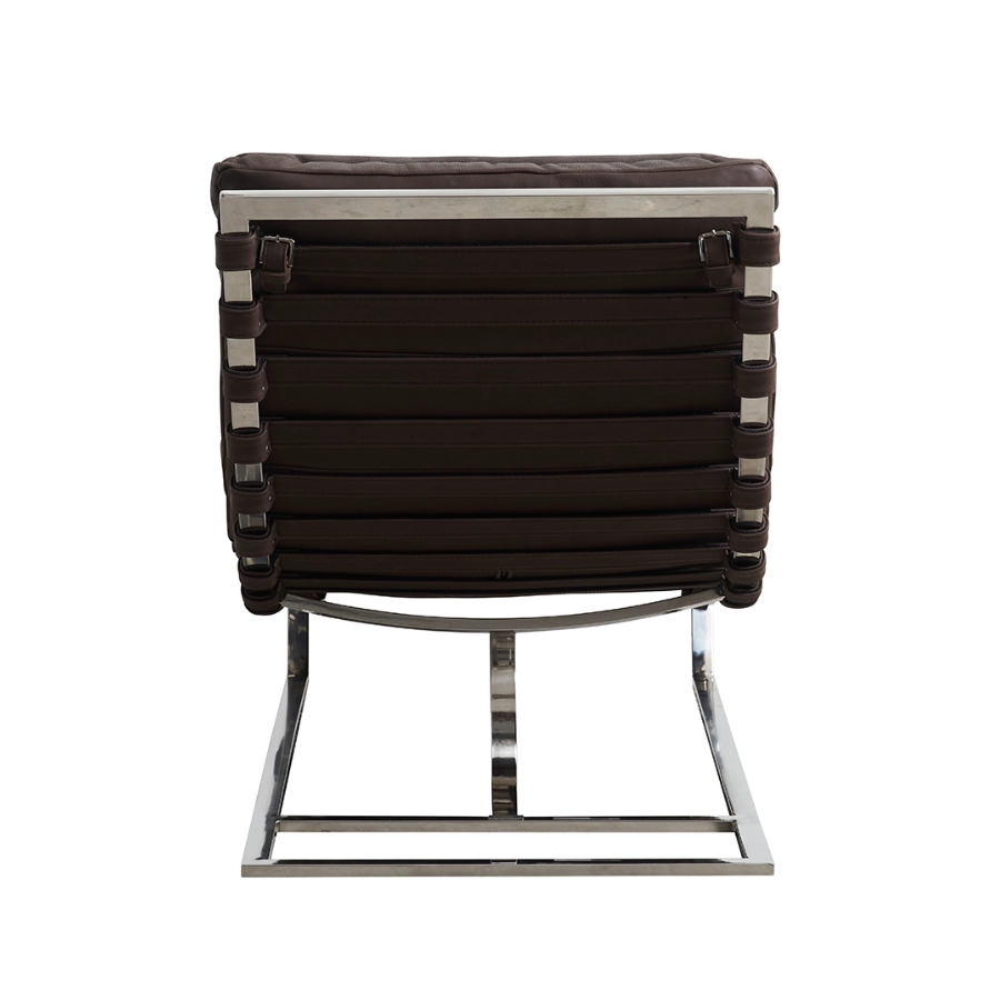 The generously padded seat offers excellent comfort and responsive support for the entire body. The brushed metal base provides a sleek contrast to the soft leather, creating a modern and architectural feel. A timeless, high-end piece perfect for the living room, lounge, or office.