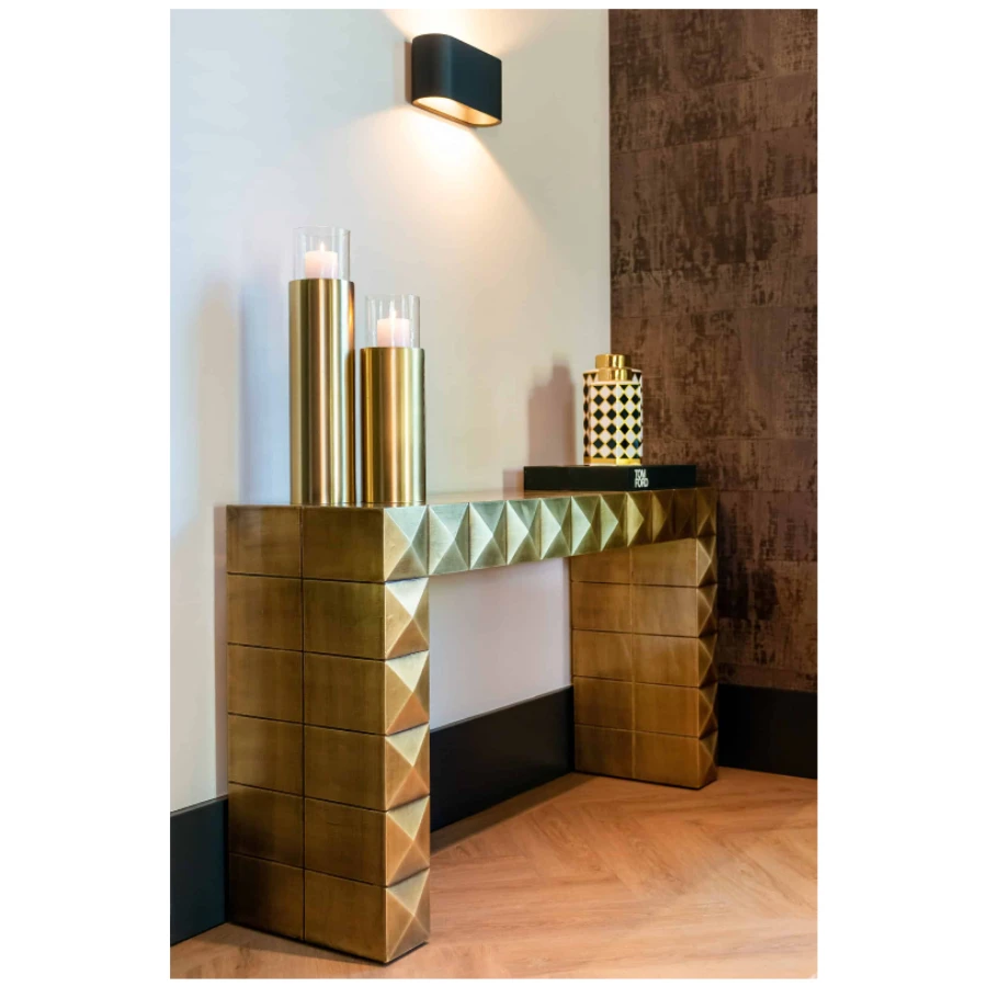 Drawing inspiration from art-deco design, the Collada Console Table is tall, sleek, and angular and boasts an impressive gleam.