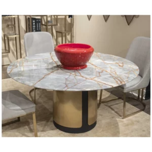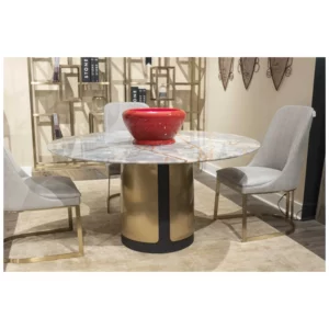 This table perfectly balances the natural allure of Italian marble with the modern vibrance of bronzed metal—showcasing Stone International’s standard of luxury and artistry.