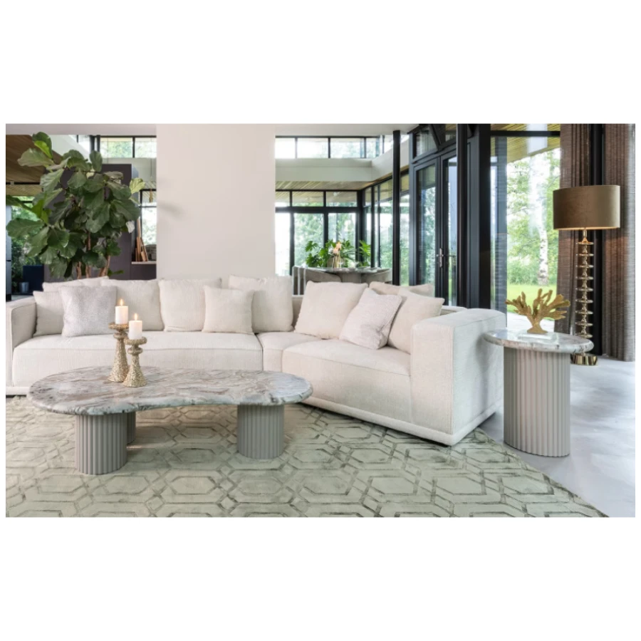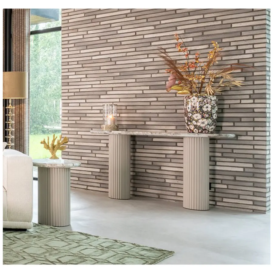 The Coronel Collection features robust MDF bases topped with exquisite marble, making each piece uniquely different due to the natural stone’s variations. This unique blend of materials ensures that every item has its own distinct character, making it a conversation piece in your home.