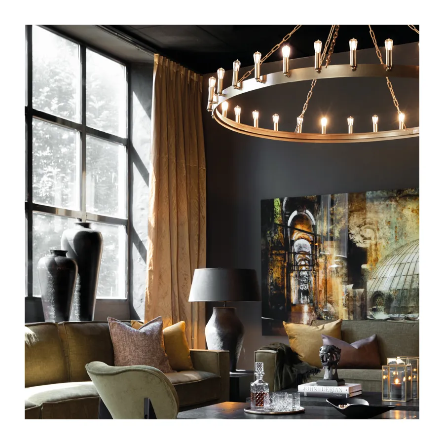 Round metal ceiling lamp. Crown is a trendy ceiling lamp inspired by the traditional chandelier, reimagined as a modern, sleek ceiling fixture. ,