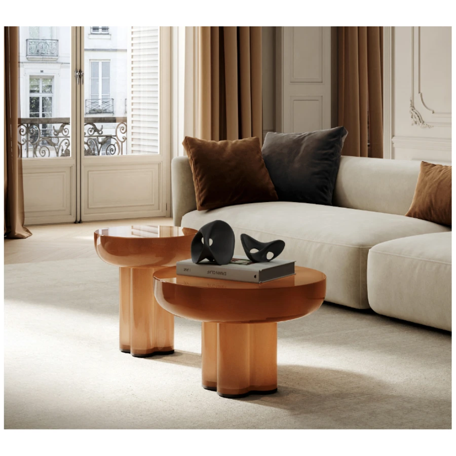 Glass: Our painted glass is created by applying pigment to the inner surface of the glass, a process that preserves the smooth clarity of the outer layer while enriching the material with depth and character. Though visually and tactilely identical to colored glass, the painted finish adds an artisanal dimension, with subtle variations that make each piece unique.