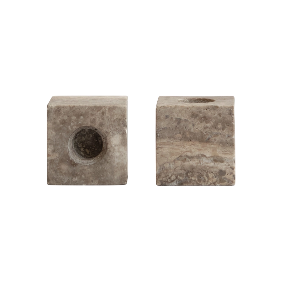 Cube Set of 2 Silver Travertine Candle Holders
