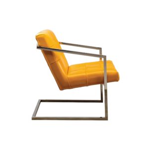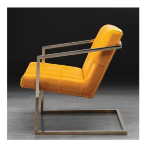 Material Story: Luxurious, high-quality leather is meticulously button-tufted, offering both a plush seat and visual texture. The rich mustard yellow color enhances the room’s warmth and serves as a statement pop against neutral or monochrome décor.