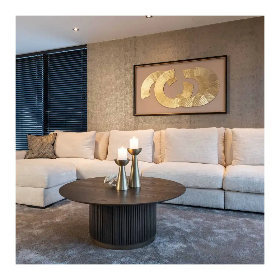 Set against a neutral backdrop and encased in a sleek black and gold frame, this art piece captivates with its textured gold foil rings, elegantly incomplete yet strikingly impactful. The Eden Wall Art effortlessly becomes the centrepiece of any room, bringing a rich warmth and sophisticated elegance to your space.