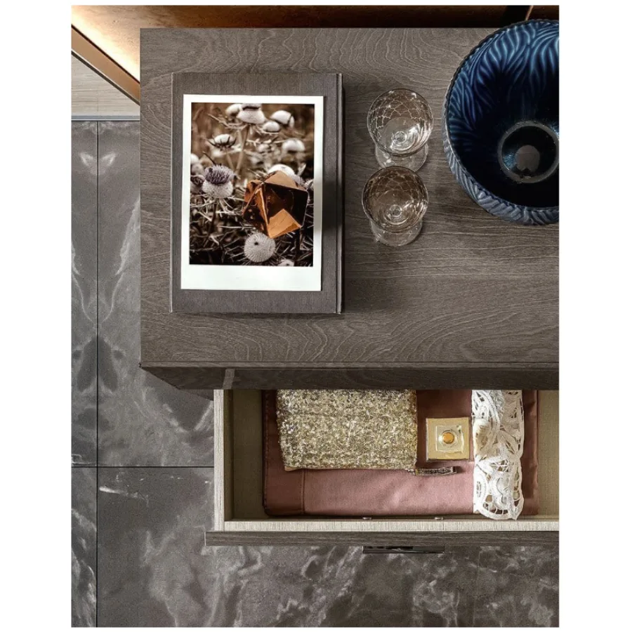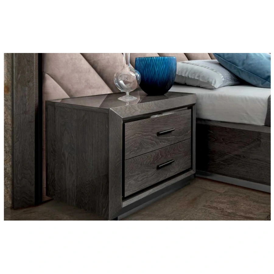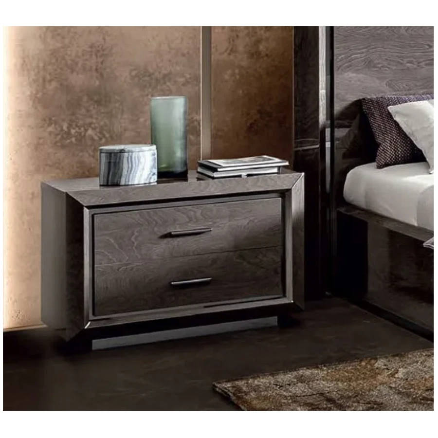 The Camel Group Elite 2-Drawer Bedside Table is a distinguished nightstand that blends Italian sophistication with modern utility through its luxurious materials and pristine craftsmanship.