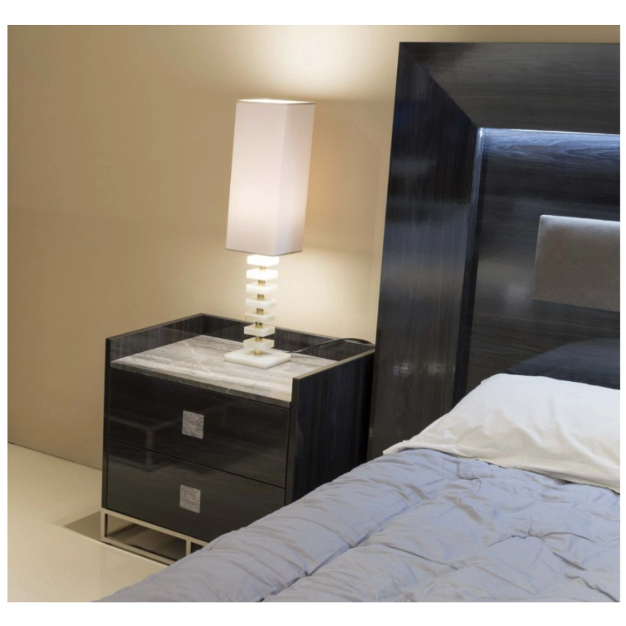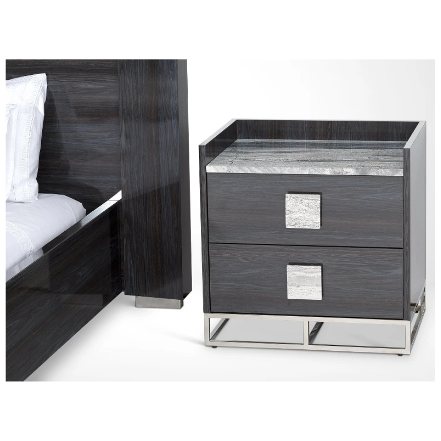The Elliot Nightstand by Stone International elevates bedroom décor with its blend of artistry, craftsmanship, and contemporary luxury.