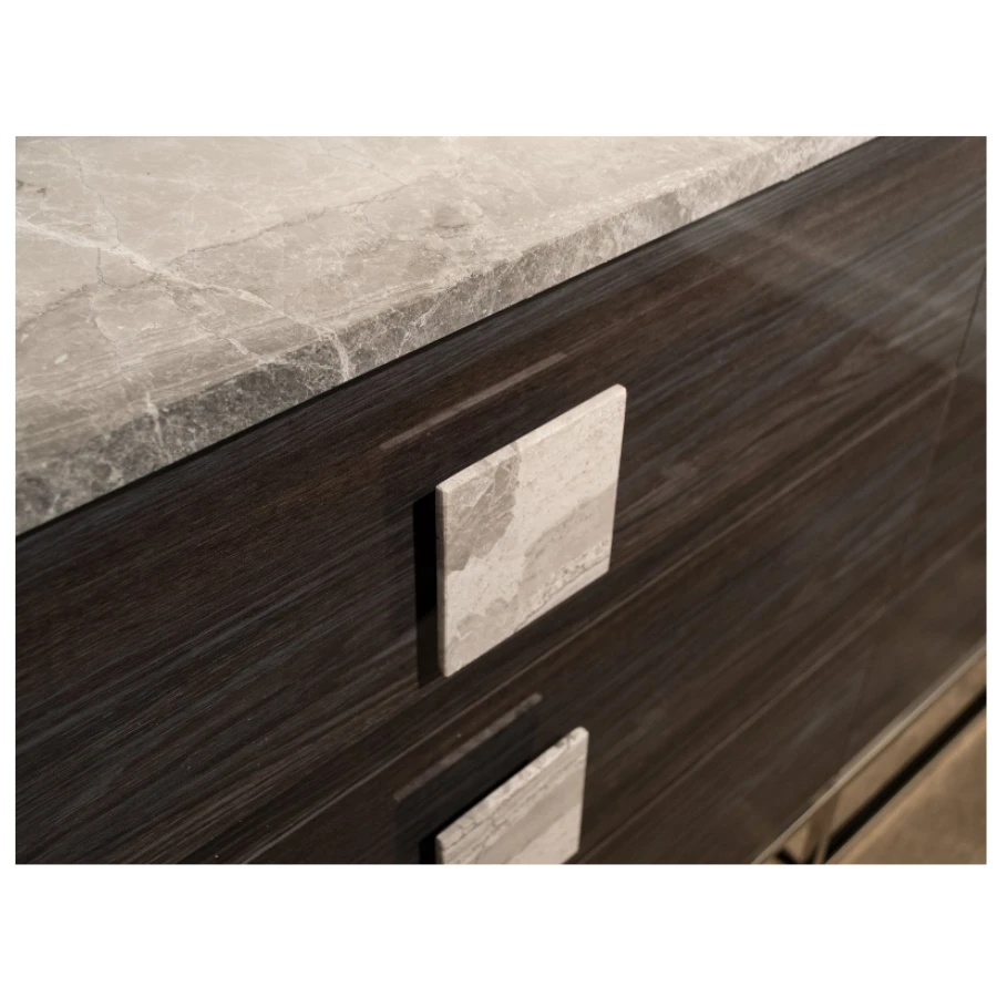 Handles: Square marble handles, coordinating with the top for a seamless aesthetic