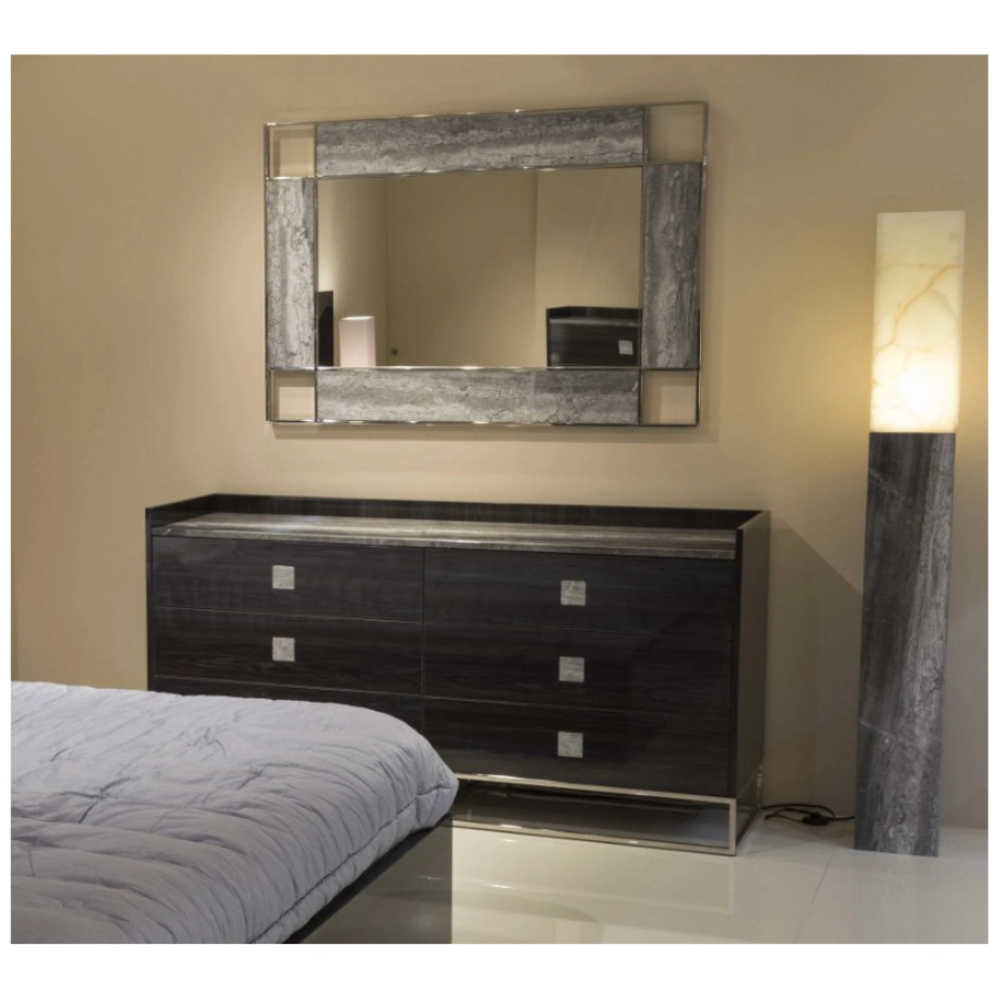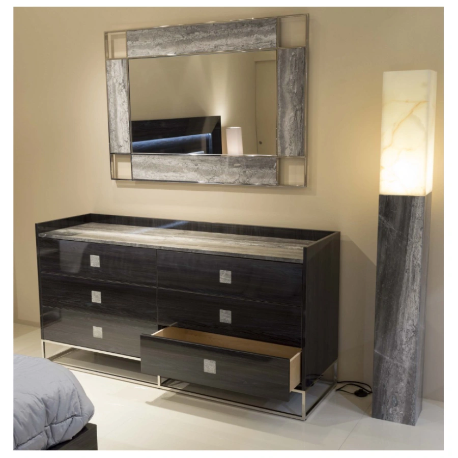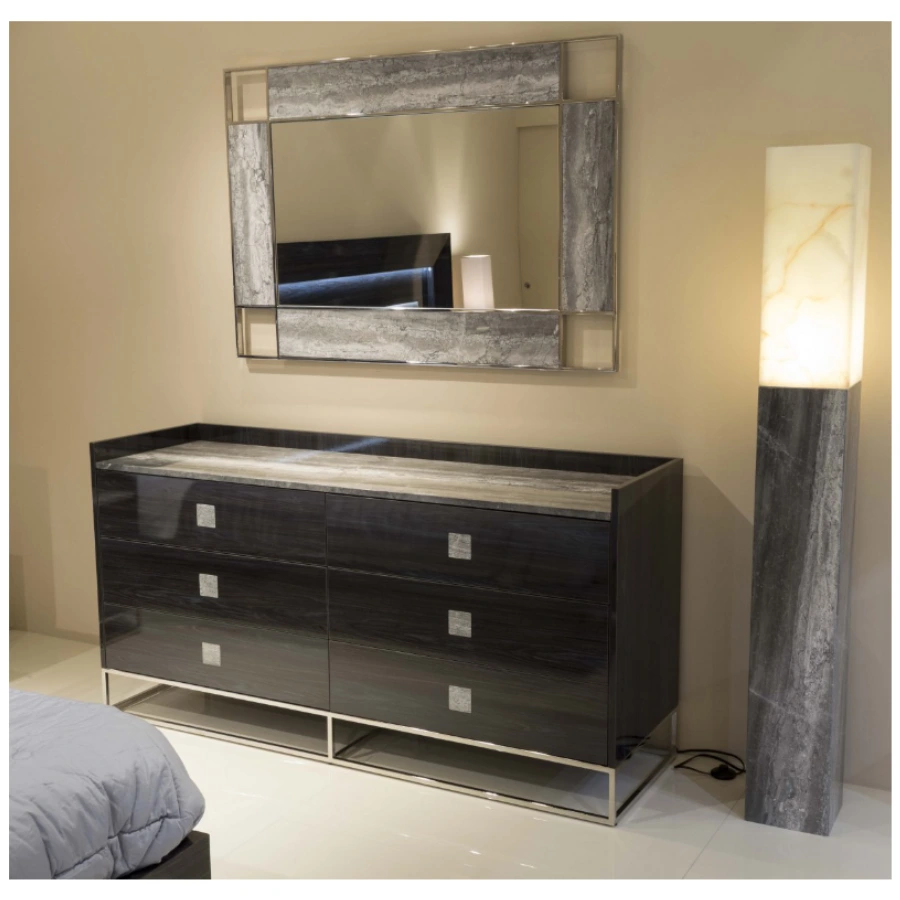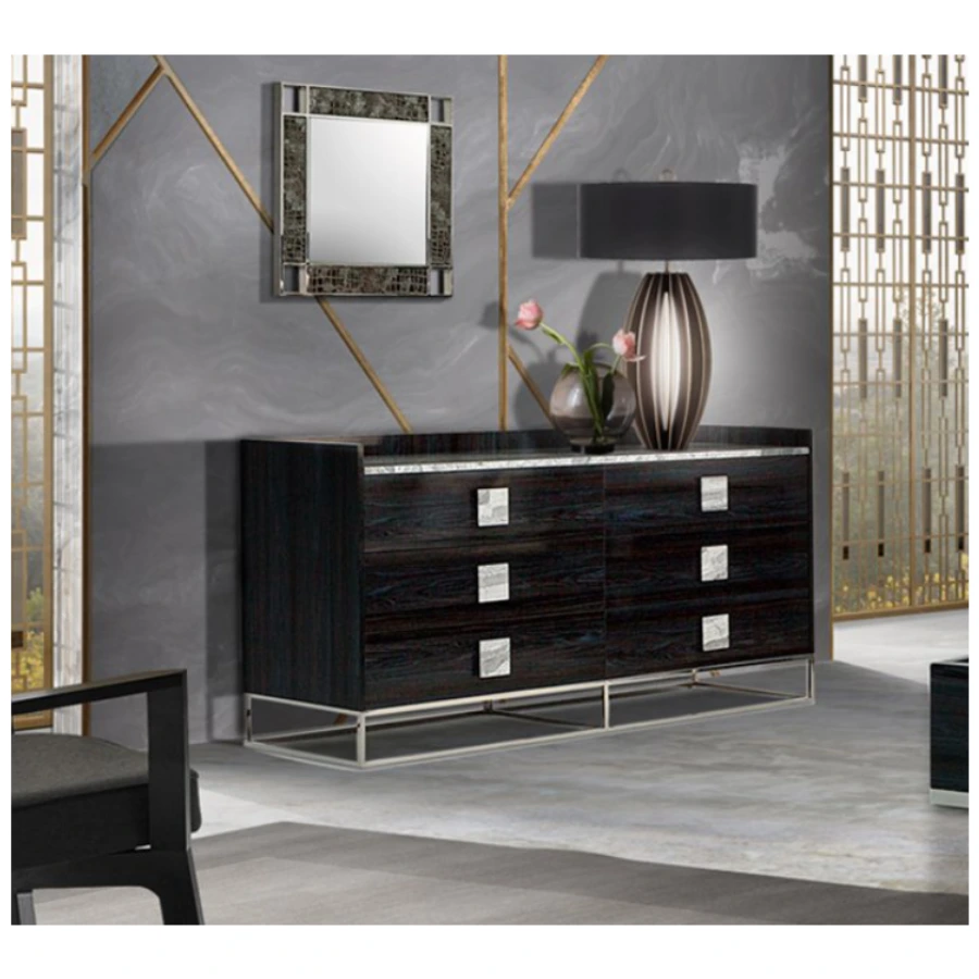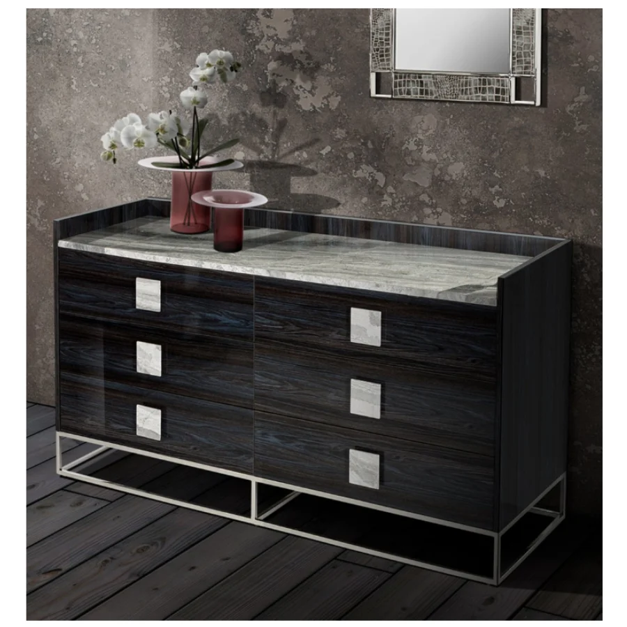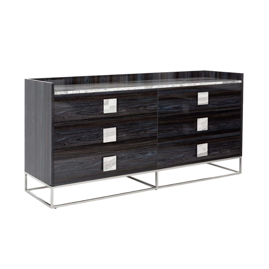 The Elliot 6-Drawer Chest by Stone International becomes an instant signature piece, combining visual drama and practical beauty for modern bedrooms and living spaces.