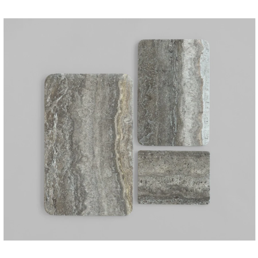 Maintenance: Beautiful and strong, Silver Travertine is a natural material and has an open surfaced. Which means it is fragile in terms of acid and can get marks. For daily cleaning it is recommend using a wet cloth and afterwards using a dry cloth to get all the moisture away. Each tray is unique in terms of colour and texture, due to the nature of the material.