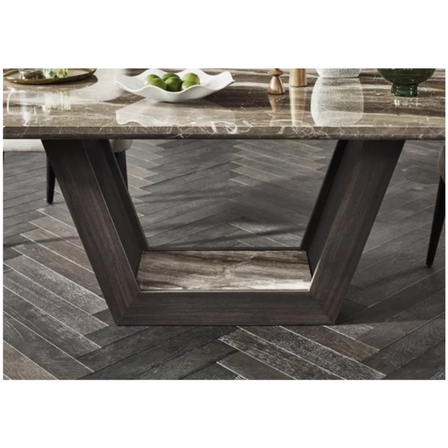 Base: The base is constructed from solid Oak wood, engineered for strength and finished in various stains. The angular geometric design delivers elegance and architectural impact. The wooden base is with marble inlay.