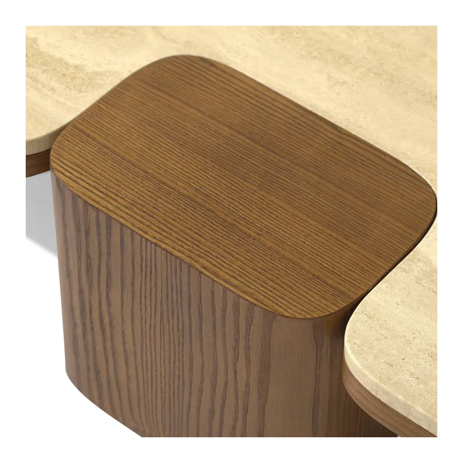 Featuring a rectangular top shape made of Ash wood with an optional piece of marble on top.