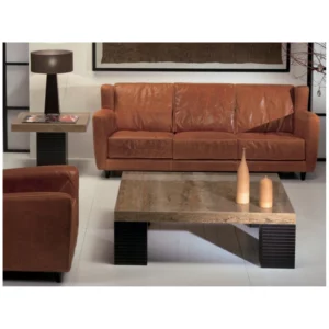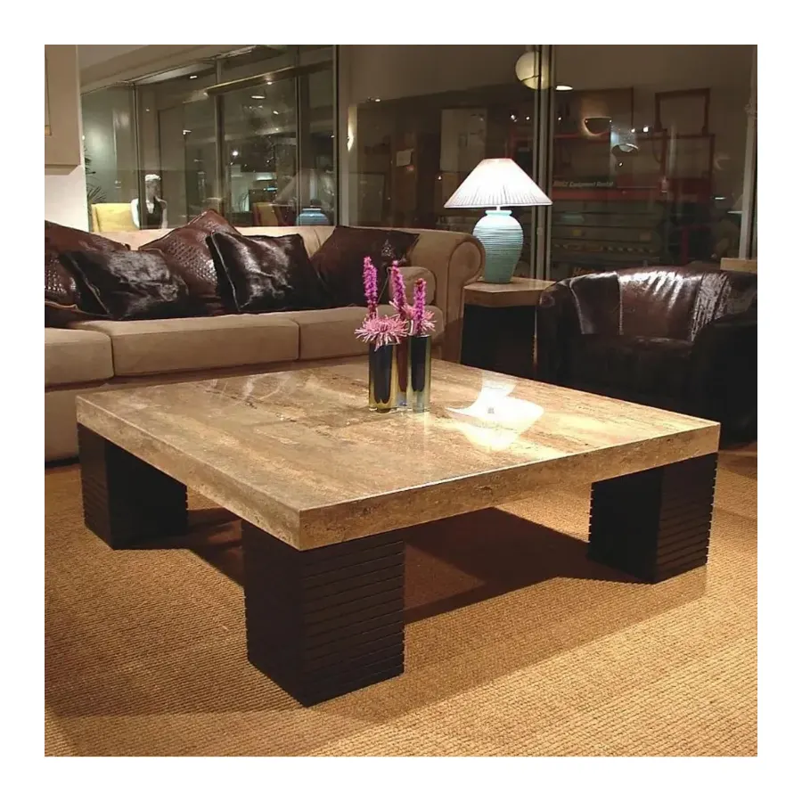 Tabletop: Natural Travertine stone, available in polished or honed finishes, with an 8 cm boxed edge for added presence.