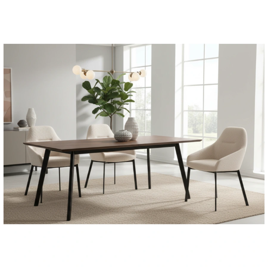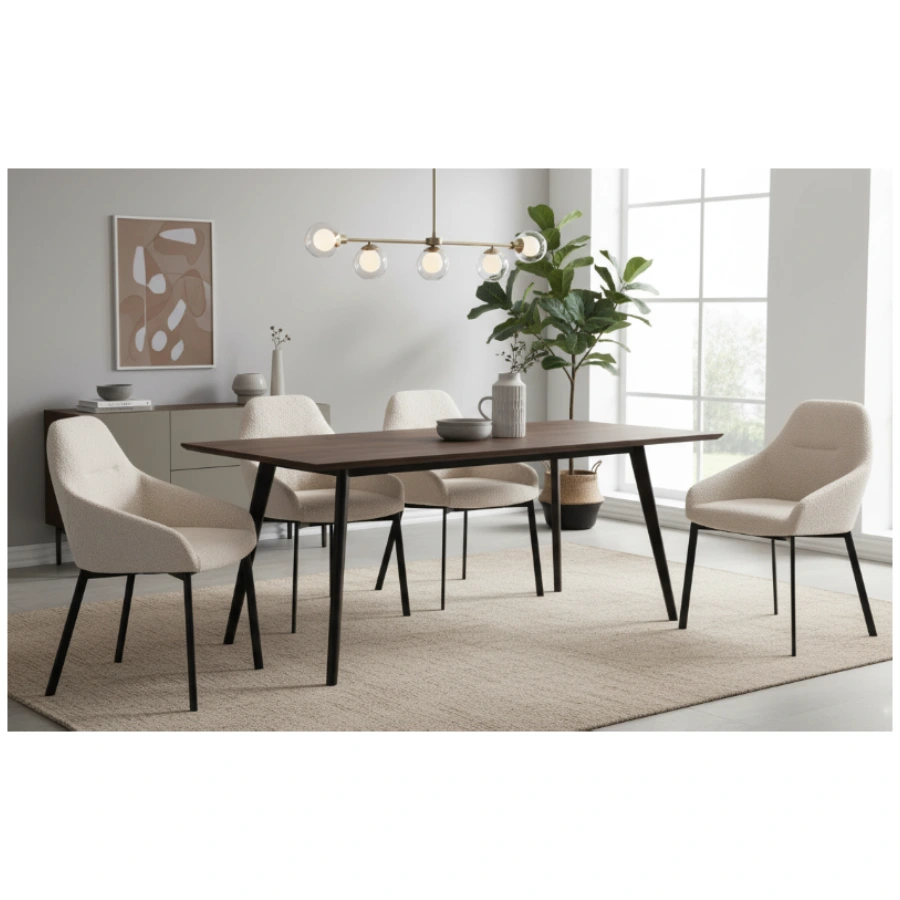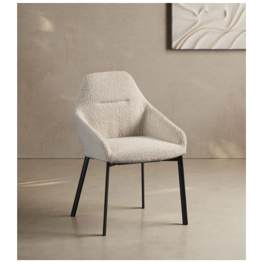 Frame & Legs:Â Matte black metal legs, set at an outward angle for stability and subtle contrast with the light upholstery.