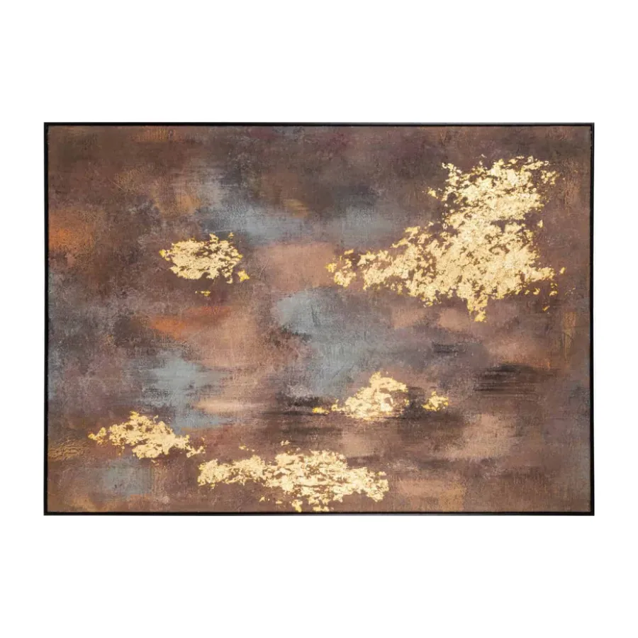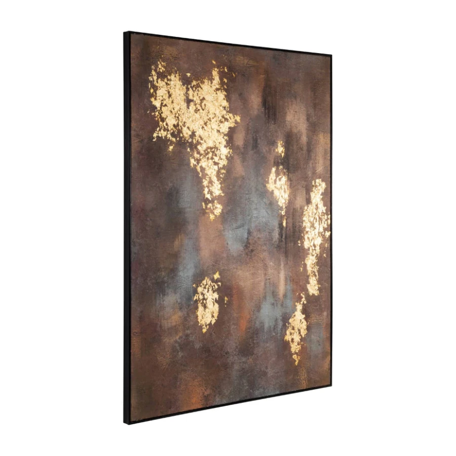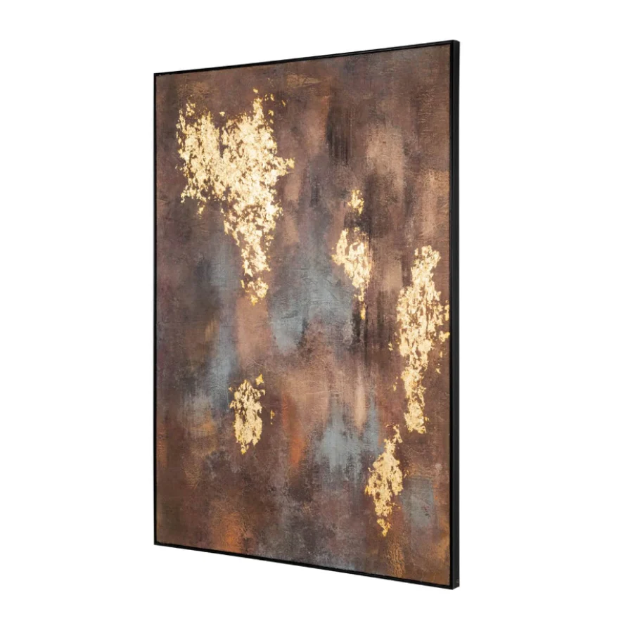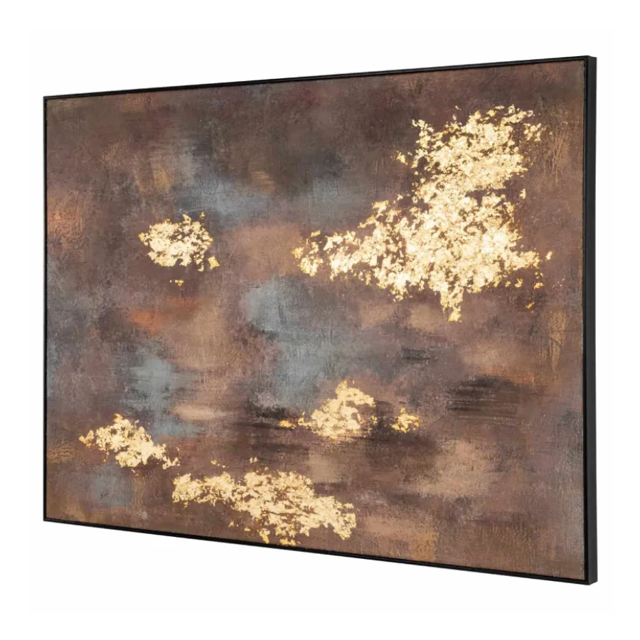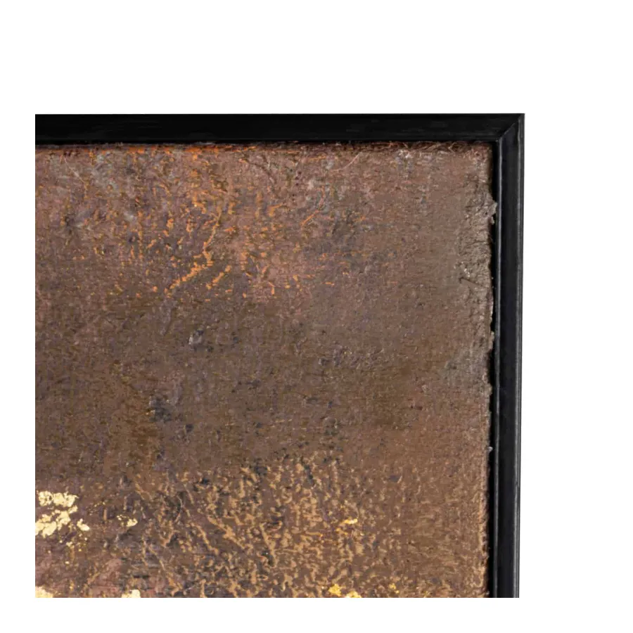 Featuring rich, moody tones layered beneath striking gold accents, this piece evokes both depth and luxury. The abstract composition encourages contemplation, while the textured surface and metallic highlights catch and reflect the light beautifully from every angle.