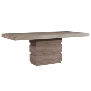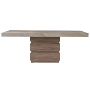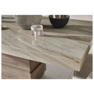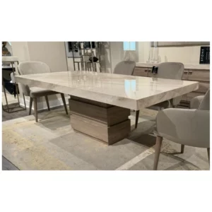 The Stone International Goya Rectangular Dining Table, featuring a Luna Bay marble top and Dove Oak wood base, is a showpiece of Italian craftsmanship and modern design that brings both luxury and structural presence to dining spaces.