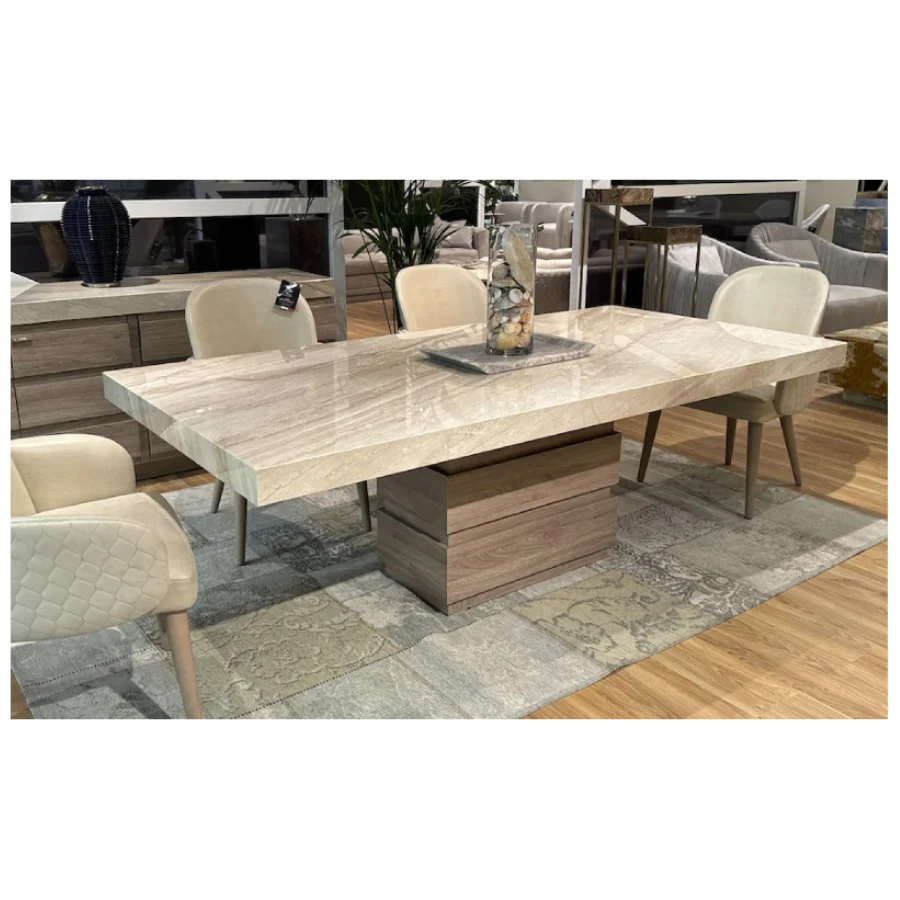 The Goya Rectangular Dining Table is ideal for those who seek a sophisticated Italian centerpiece combining natural stone beauty with modern, architectural woodwork, ensuring lasting style and function.