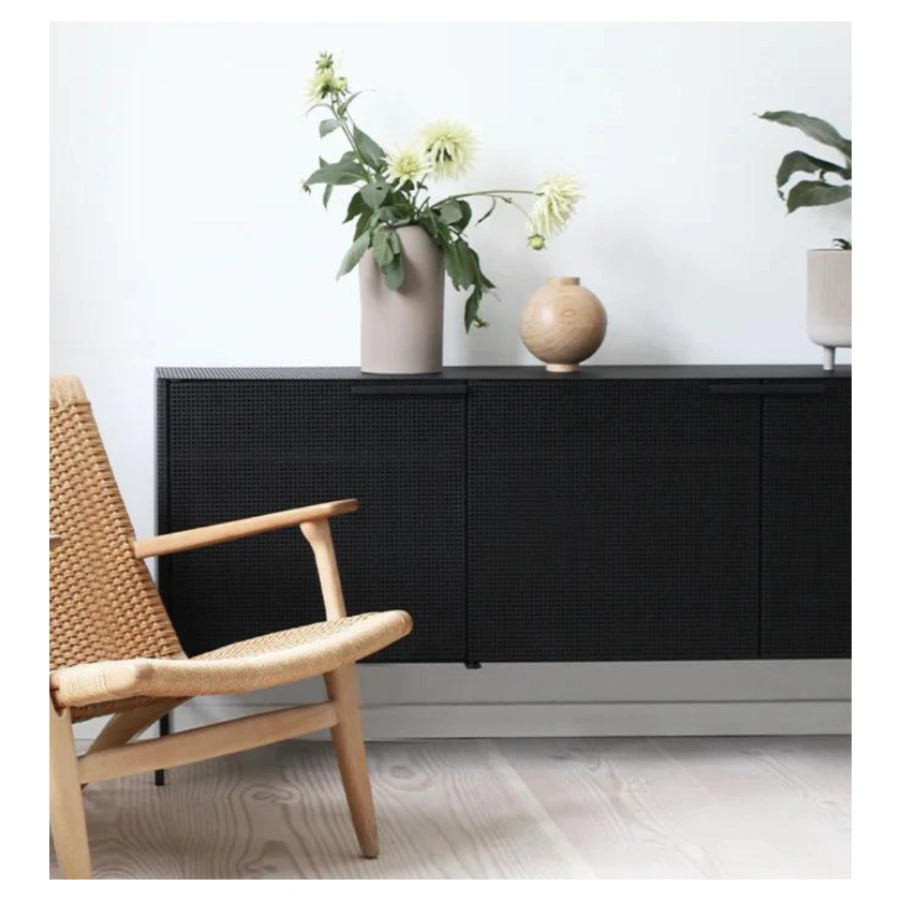 The Grid Sideboard is made of powder coated steel.
