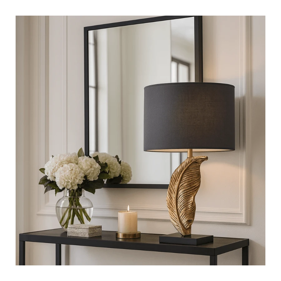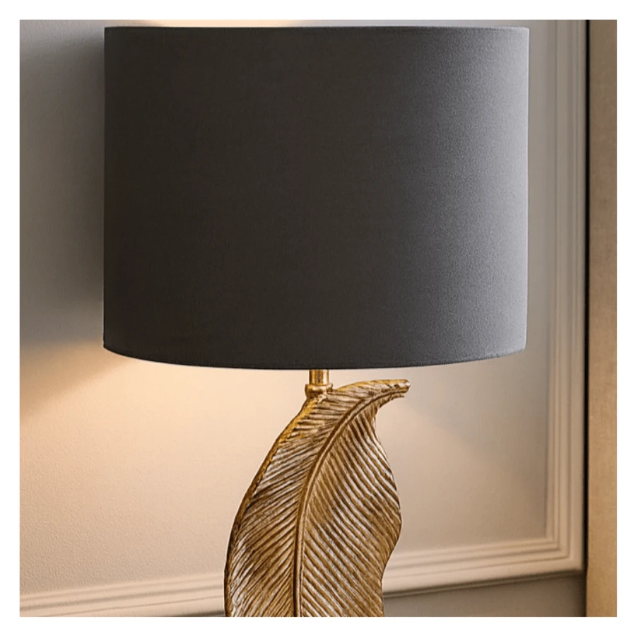 Standing on a sleek black base, it features a striking leaf-shaped metal body that boasts intricate detail and a luxurious gleam. A simple black shade complements what is already an elegant design for a chic aesthetic that will radiate throughout your space. Its distinctive style and tasteful finish allow it to blend into just about any design scheme. On your bedside table, or as part of your office décor, the Havana Table Lamp is sure to impress.