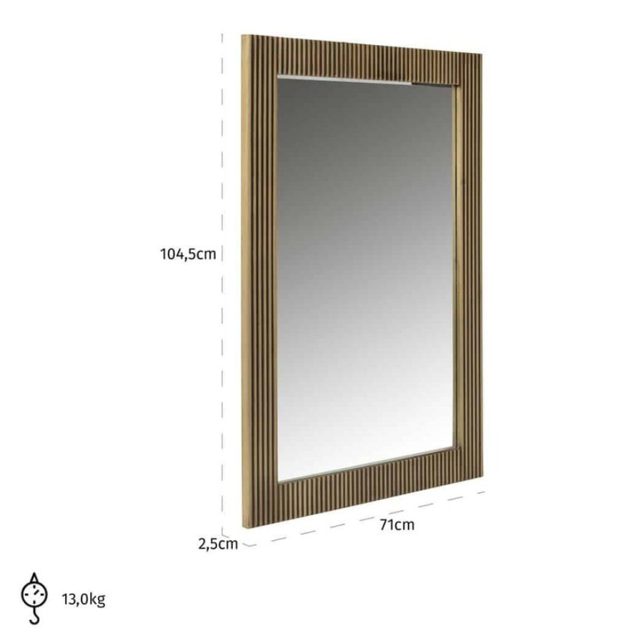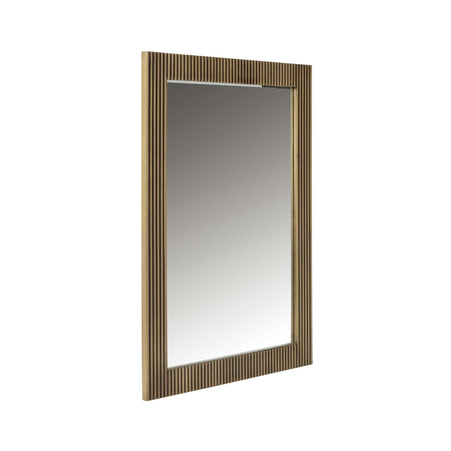 Encased in a square, brass-finished frame that boasts meticulous linear grooves, this mirror is a statement piece designed to captivate and complement. Perfect for the minimalist urban loft or to add a touch of sophistication to a rustic scheme, it reflects more than just your image – it echoes your impeccable taste.