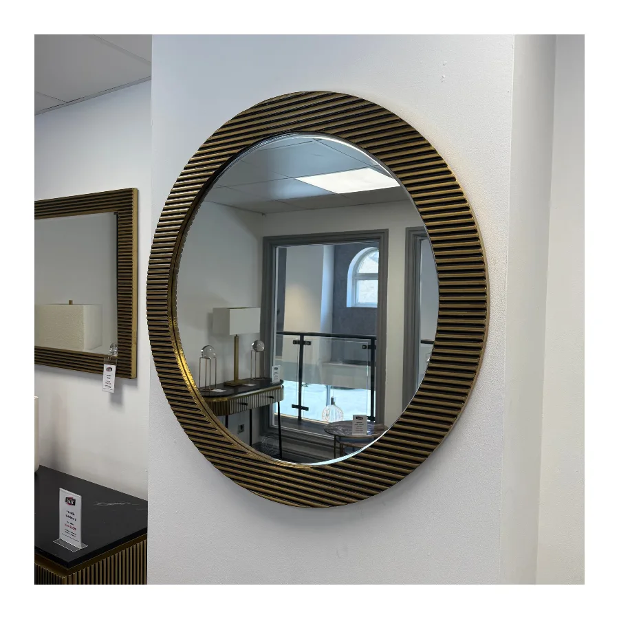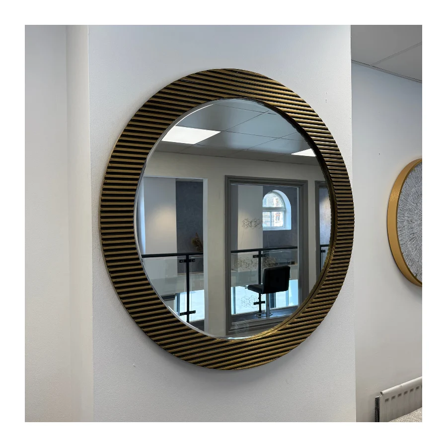 This stunning mirror is not just a reflection of yourself, but a statement piece that will impress everyone who sets eyes on it. A unique and eye-catching design that will add a touch of sophistication to any space. The circular shape of the mirror creates a sense of harmony and balance, while the gold finish adds a touch of luxury that is sure to turn heads.