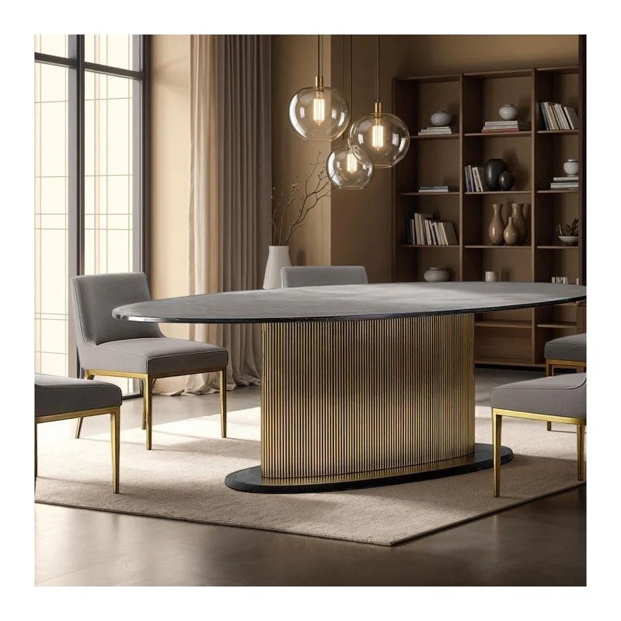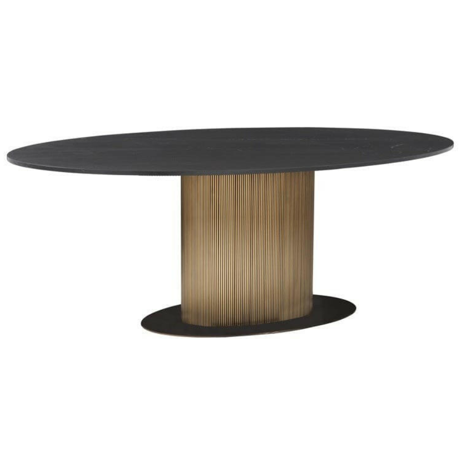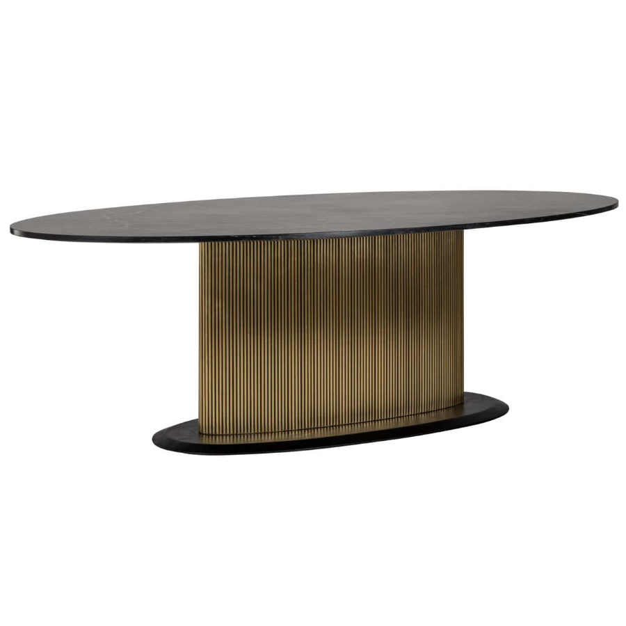 The elegant Ironville dining table features a black marble top, making each piece unique.